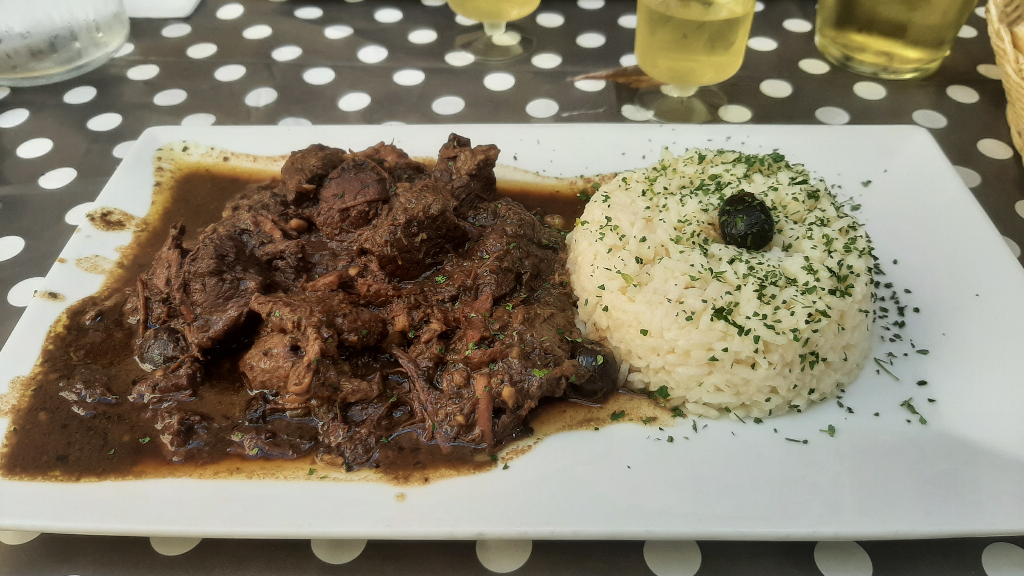 Excellente paella et excellente Gardiane de taureau. Tout est authentique. Accueil super sympa. Ambiance corrida 100%.