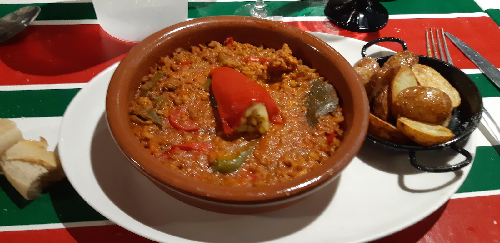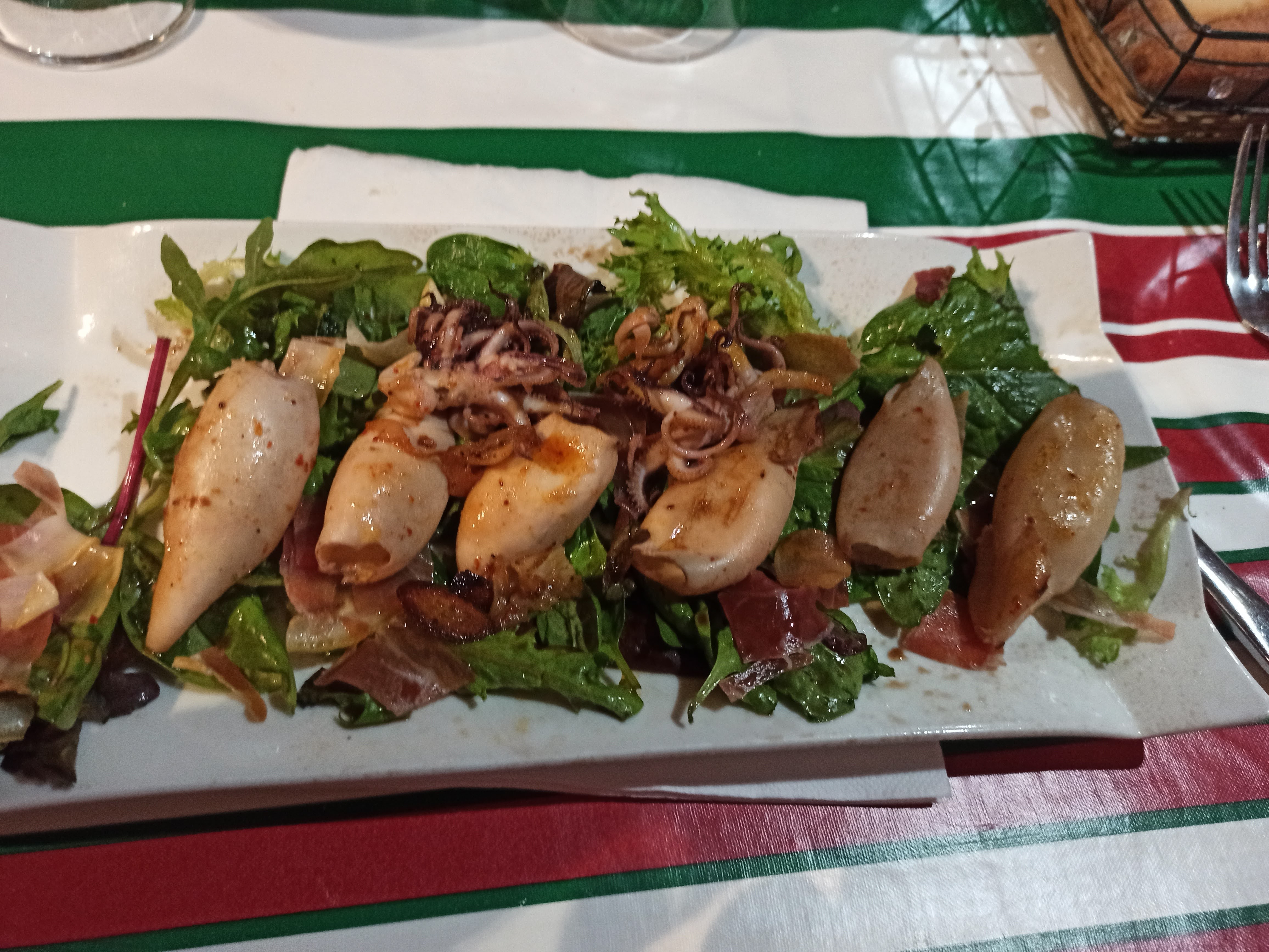 J’ai aimé l’accueil chaleureux fait par ce personnage haut en couleurs qu’est le patron . J’avais, sans le savoir , mis un maillot de rugby de l’Aviron Bayonnais . Riche idée s’il en fut car j’avais en face de moi un vrai Bayonnais qui de plus, avait porté ces couleurs dès son plus jeune âge ! Bref la cuisine n’avait rien à voir dans cette affaire. Nous avons choisis en entrée les gambas et les chipirons : fameux ! Quant à la daube de Toro : un délice ! La truculence du patron n’a d’égal que la gentillesse de la serveuse. Allez-y vous ne le regretterez pas.