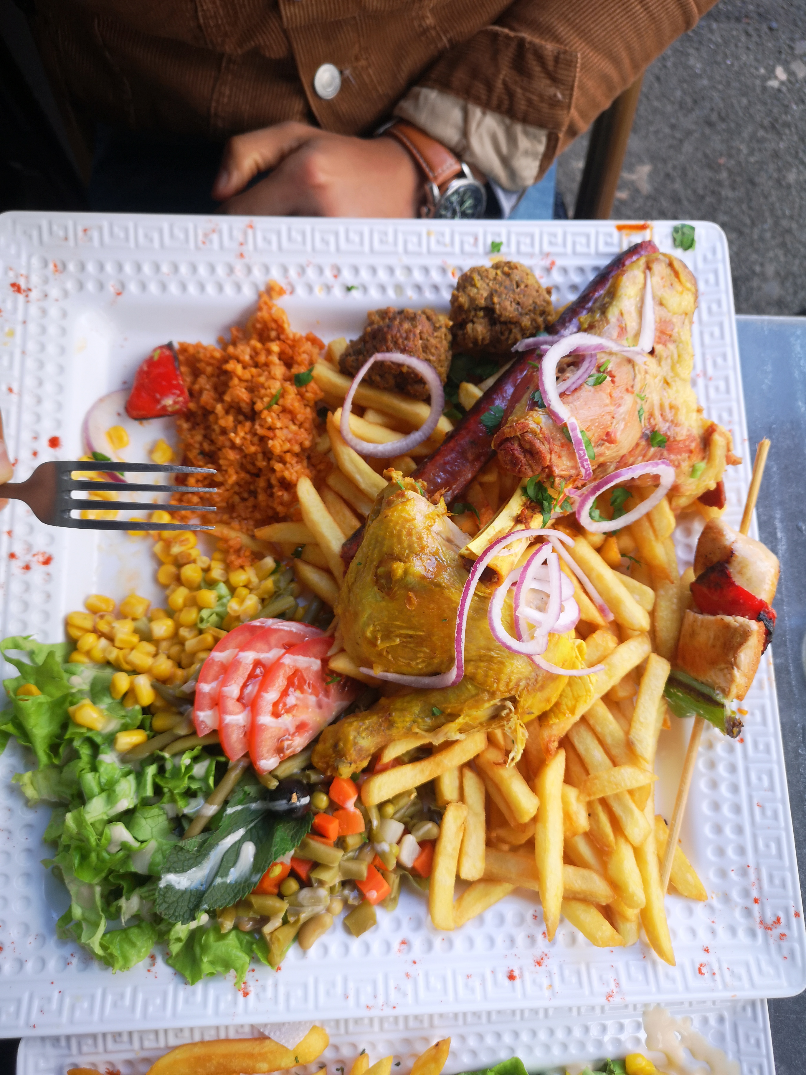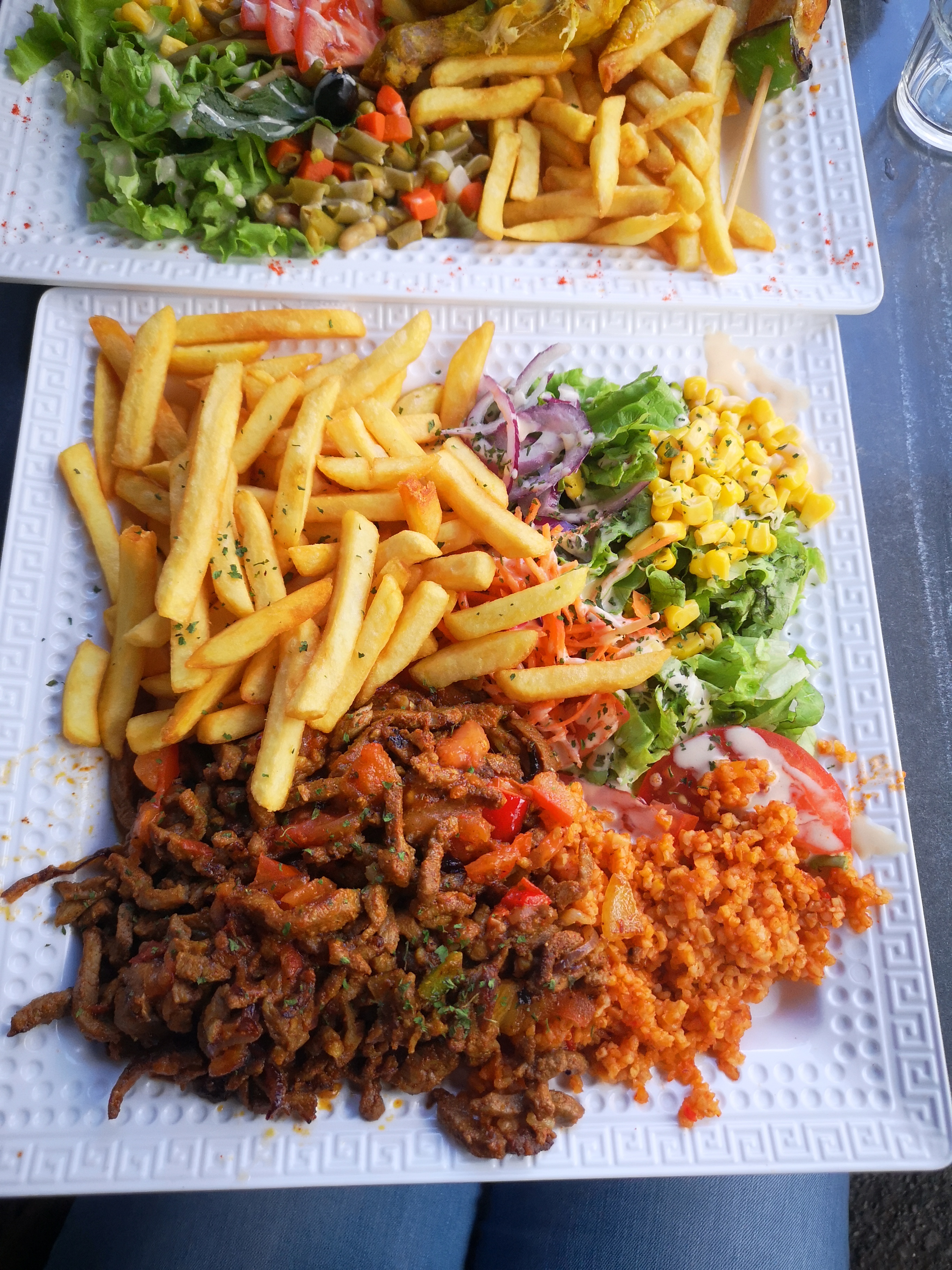 Assiettes trop copieuses. Bulgur un peu sec. Le reste est assez bon. Le service est correct, certains serveurs souriants et d'autres moins. Nous avons été placés dans un angle du restaurant vieillot, pas très propre. Nous y sommes allés par hasard avant de lire les commentaires sur la mauvaise qualité hygiène que j ai vu pendant la longue attente. Ça m'a sans doute refroidi et mis en méfiance. Le patron est sympa. Je pense que ce restaurant mérite d'être encouragé et à eux de faire les efforts pour offrir un service adapté et un meilleur cadre.