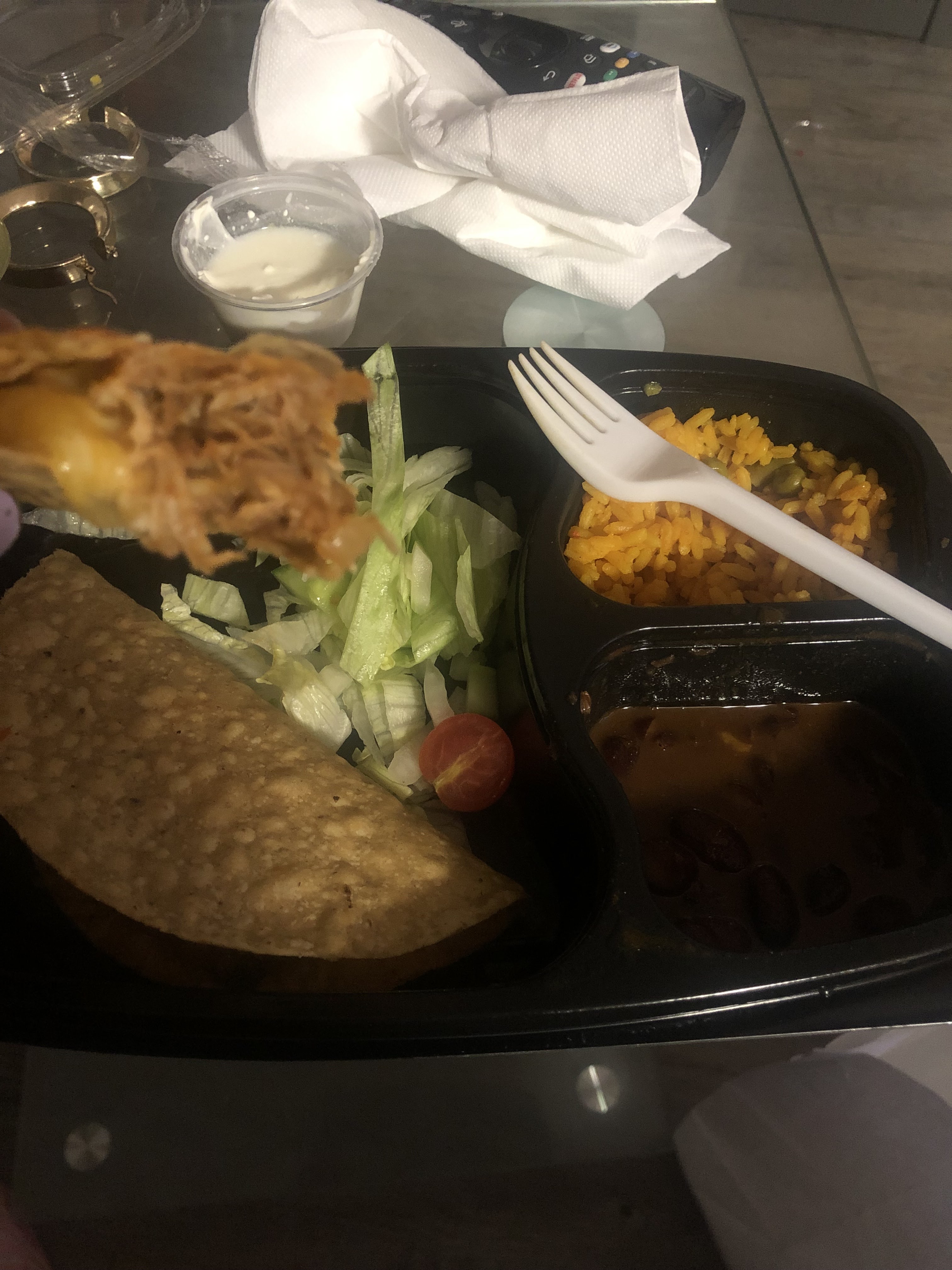 Nourriture tiède, fade et quelconque. Plats à base de galette de maïs tous mous, impression qu'ils ont été réchauffés au micro-ondes... Le rapport qualité-prix n'est pas du tout respecté, il existe bien meilleurs dans les environs !