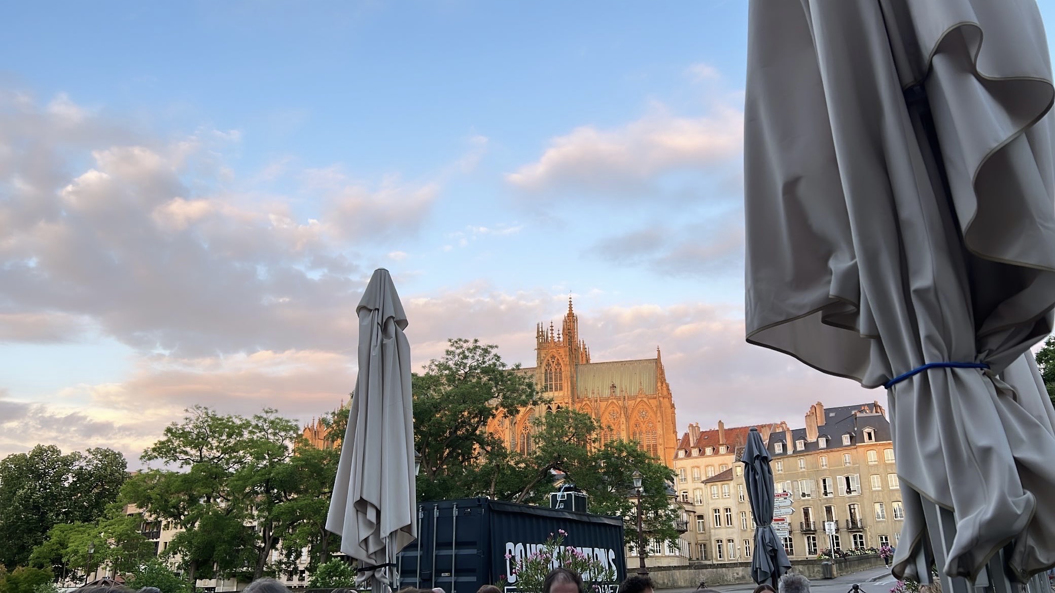 En terrasse ce dimanche 14mai 2023....avec vue sur la cathédrale, sous le soleil, exactement...Metz est une ville très attractive