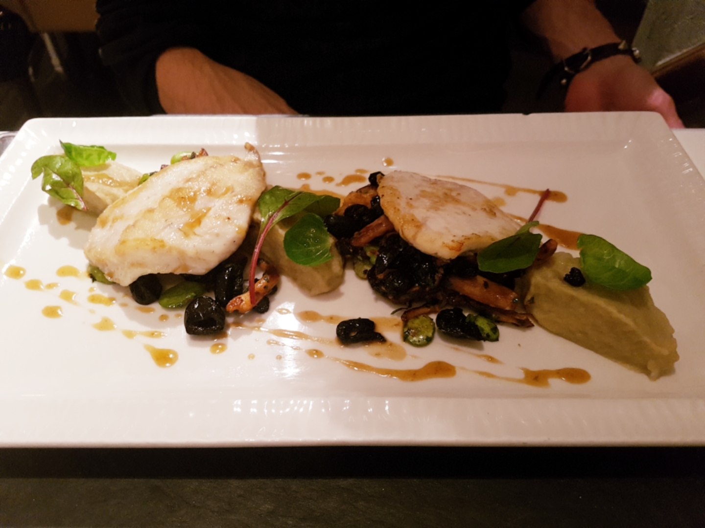 Menu à 25€ comprenant entrée + plat. Les quantités ne sont pas énormes mais ça a fait l'affaire, c'était bon. J'ai tenté les croquettes de boudin noir, pour la science, et c'était vraiment pas mauvais. Le reste des convives étaient plus réservés (avec la carbonnade de marcassin).