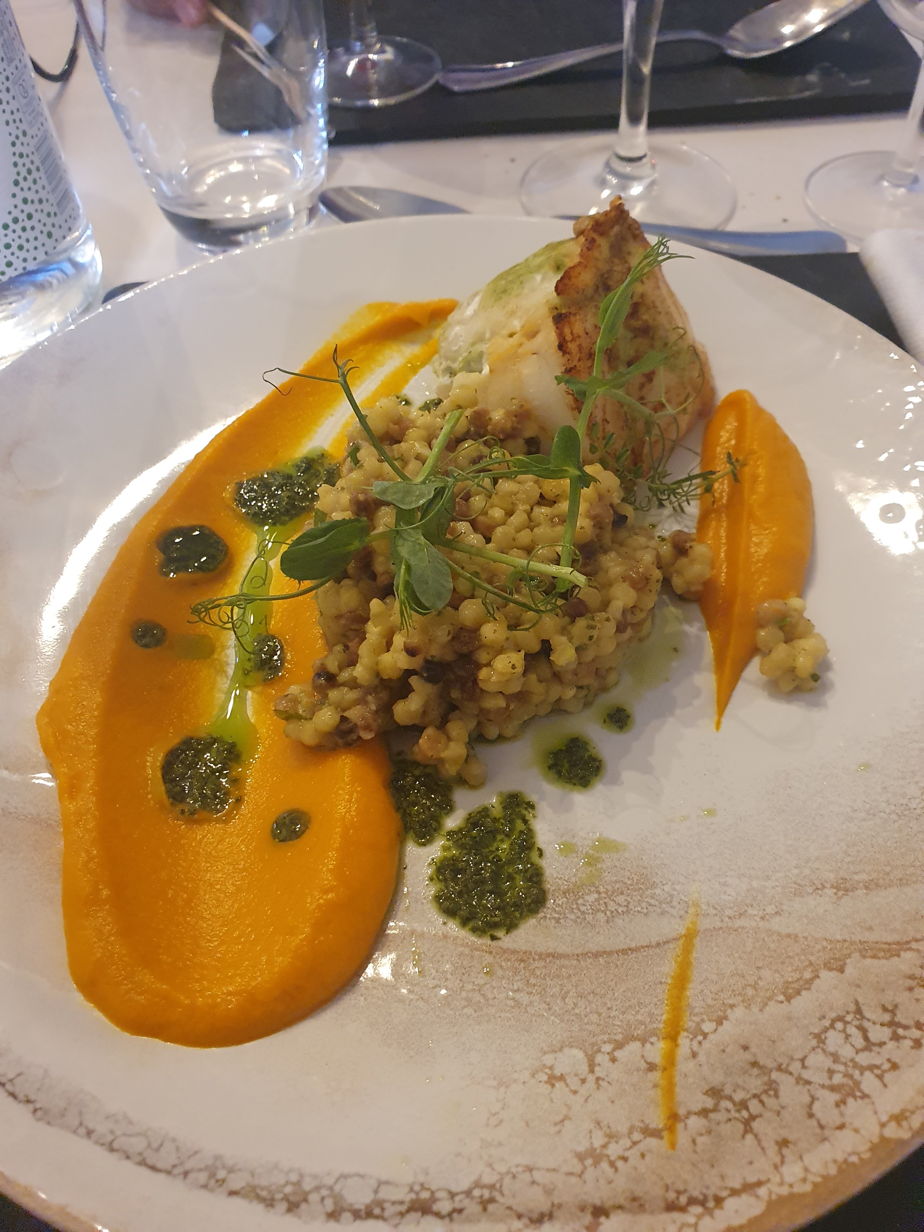 Le dressage et joli et on ne peut pas dire que ce soit mauvais mais L'oeuf et le mignon de veau nous ont paru a tout les deux assez fade et manqué d'assaisonnement a l'inverse le pave de turbo était trop salé. La table dans le passage entre les cuisines et les toilettes ne semble pas le meilleur choix pour installer un couple qui veut diner et le service était un peu lent. Mitigé.