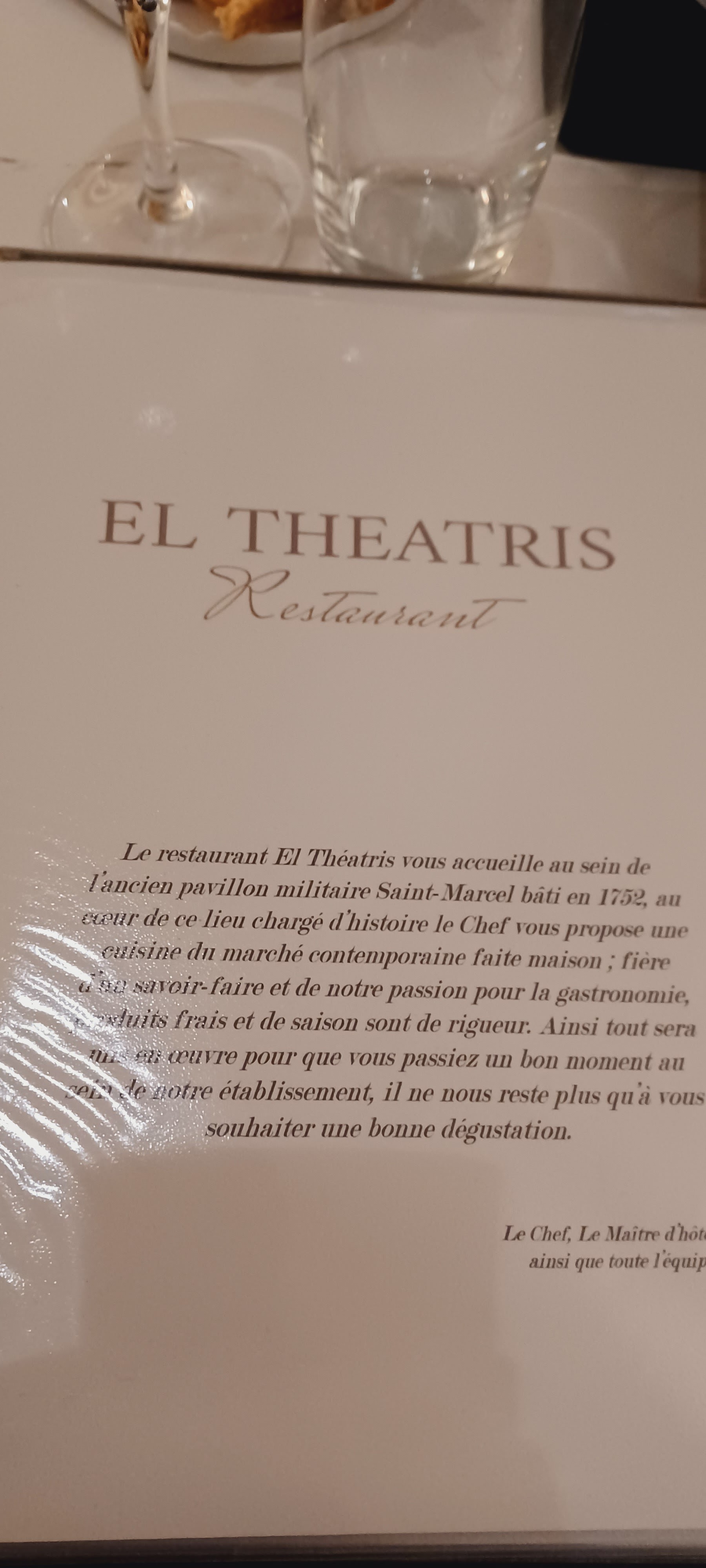 J'avais réservé le El Theatris pour mon baptême et vraiment aucun regret! Le personnel est super, présent à chaque moment, réactif et à l'écoute. Le repas était délicieux et assez copieux! Sur les 13 invités aucun mauvais retour! felicitation a tout le personnel