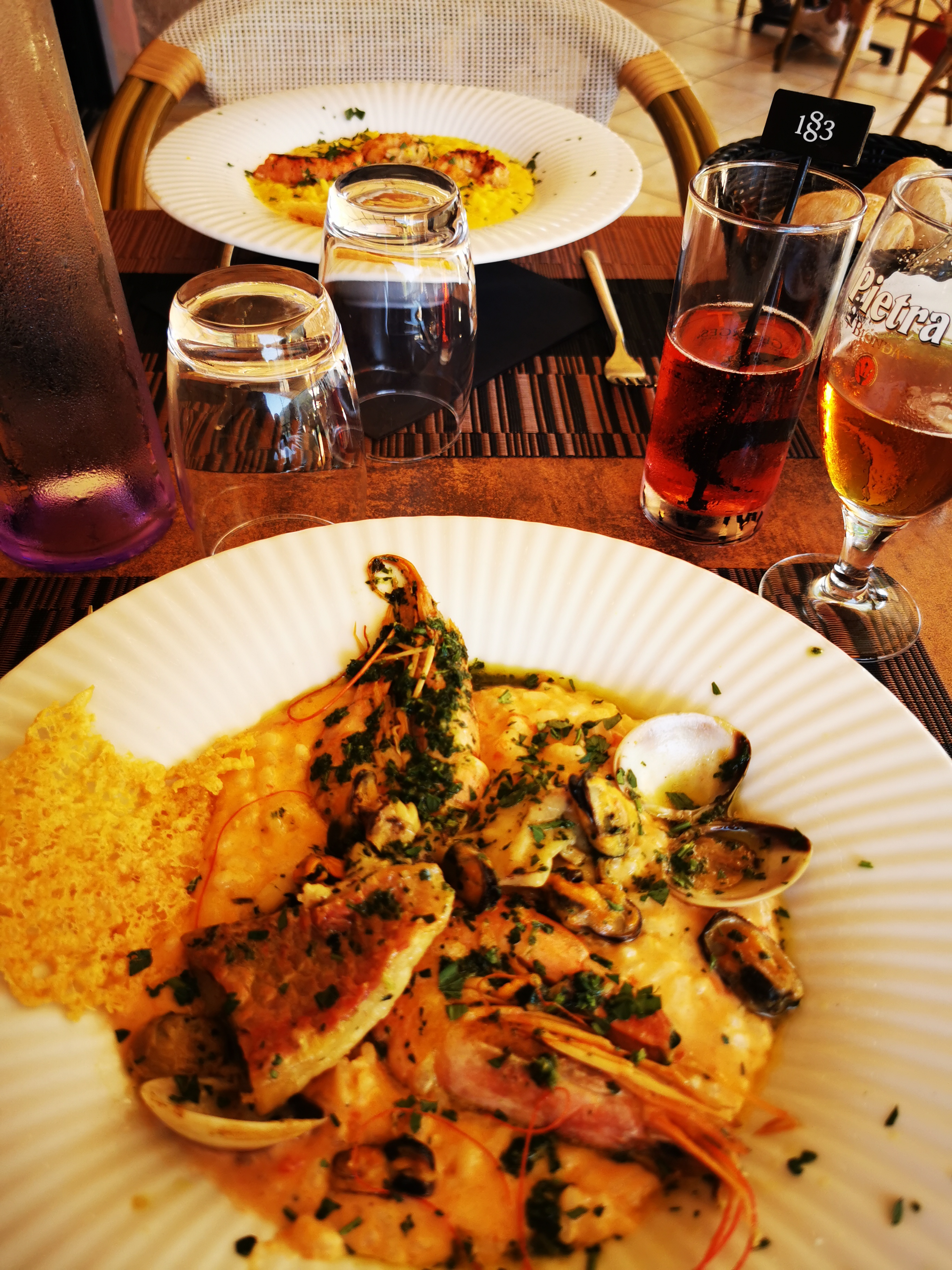 Petite halte dans le port d’Ota… restaurant El Toro : service et accueil très agréables avec vue sur le port. Nous nous sommes régalés avec des calamars à la plancha, un risotto fruits de mer et une salade chèvre chaud et pour finir des sorbets artisanaux 😋 Nous avons été ravis, merci encore Des lyonnais 😉