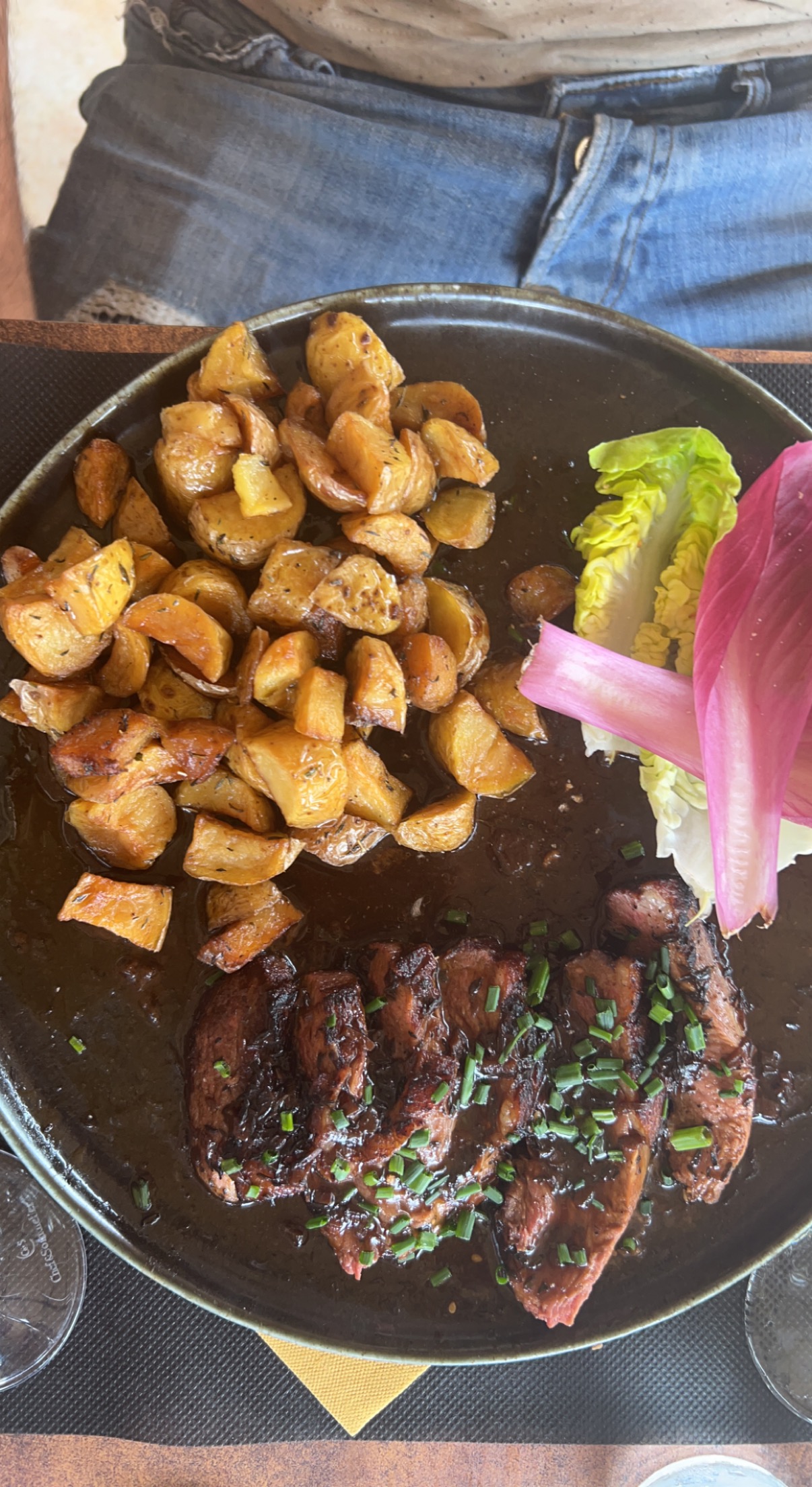Entrée, plats et dessert formidables. Nous avons partagé un frito misto, fruits de mer frits pour l’entrée. Tout était parfait. Autant le goût que la présentation. Par la suite, filet de dorade en croûte, riz noir et légumes, une petite petite tout comme le tagliata de boeuf, servi avec roquette, copeaux de parmesan et oignons frits. La viande était tendre, les frites maison et le tout en quantité remarquable. Le dessert (cookie au caramel beurre salé) et les digestifs étaient également parfaits. Le serveur très aimable, sympa, énergique et bon vivant. Pour couronner le tout, nous avions vue sur la mer. Il fait vraiment bon passer des moments dans des endroits pareils. À tester absolument ☺️💛