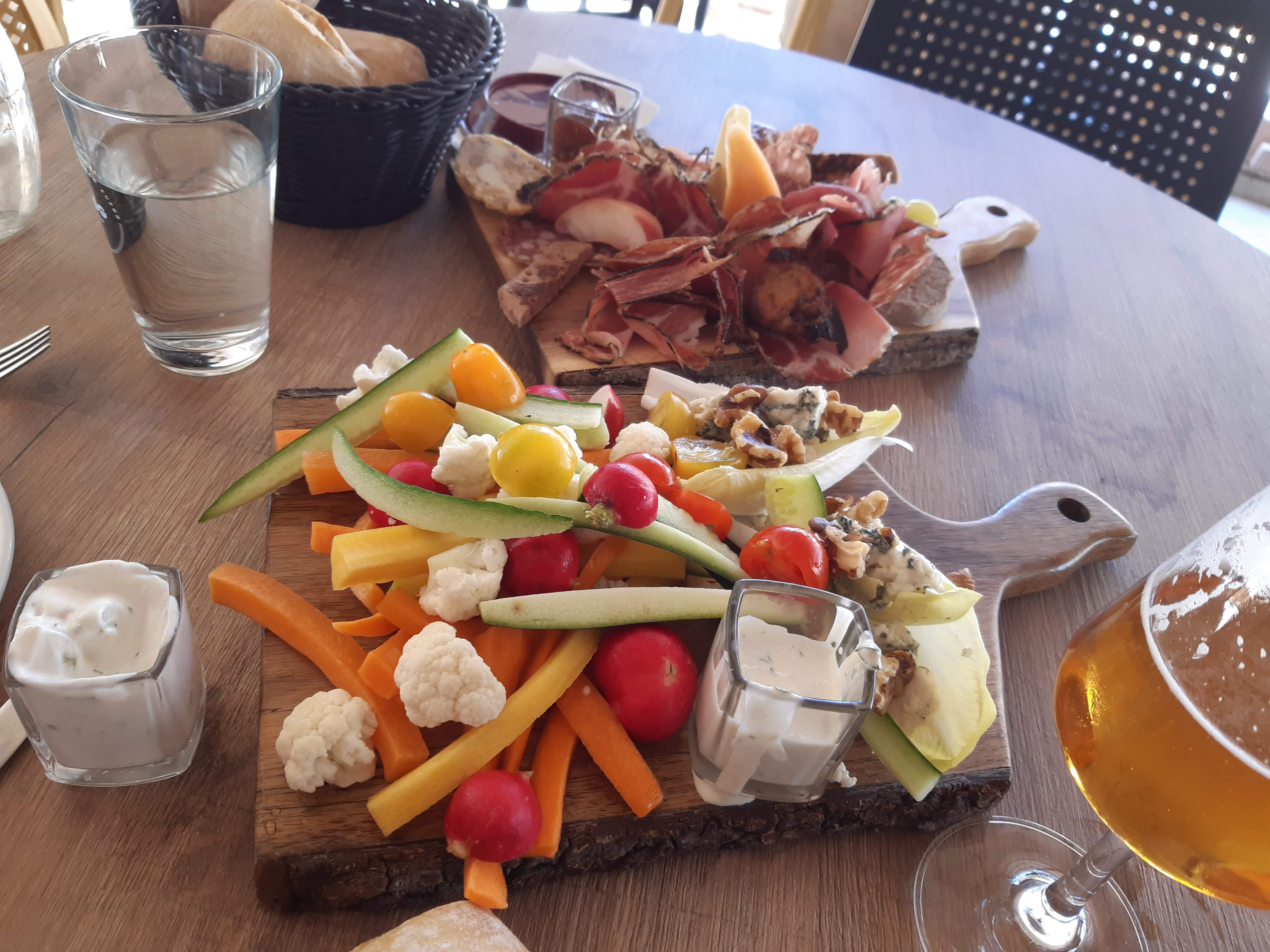 Planche de fromages garnie, belle présentation avec des produits de qualité. Serveur de très bons conseils concernant le vin pour l'accompagnement de celle-ci. Terrasse avec une très belle vue, je recommande sans hésitation !