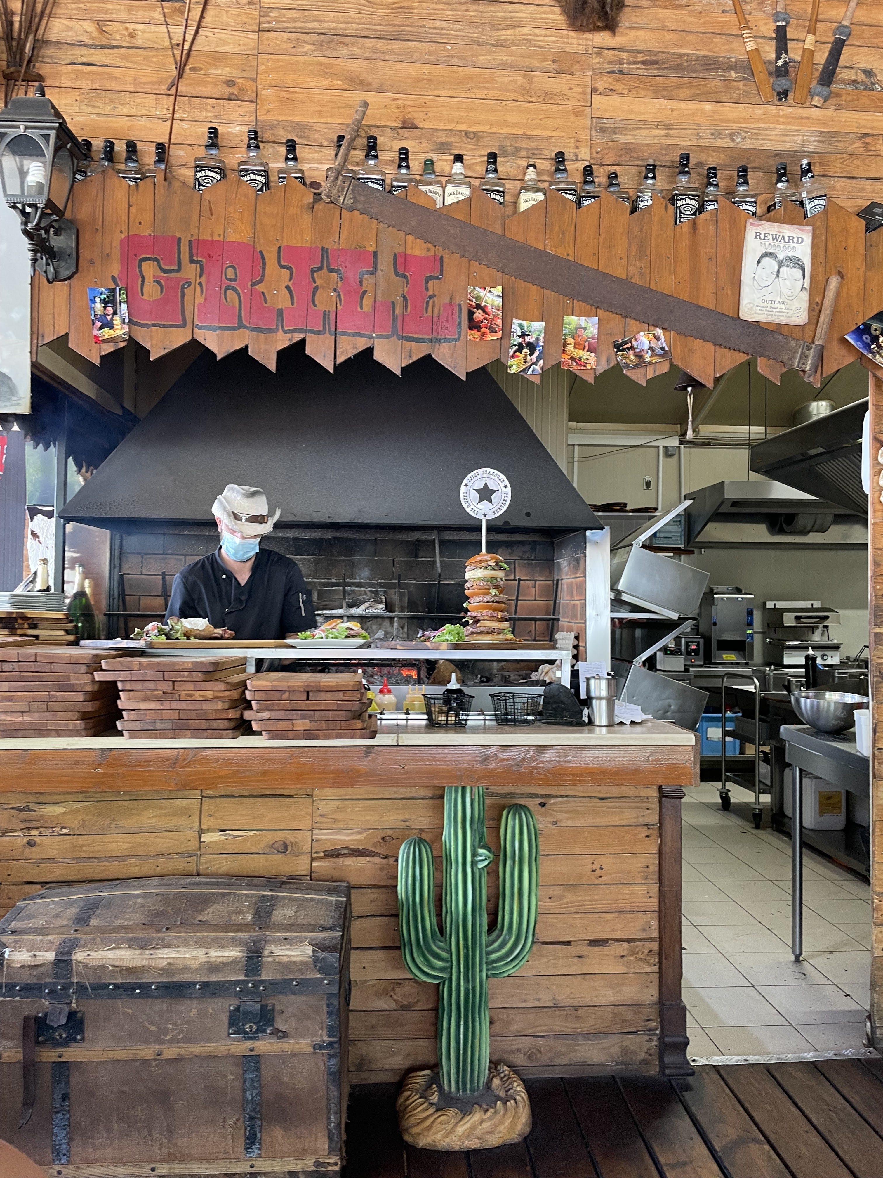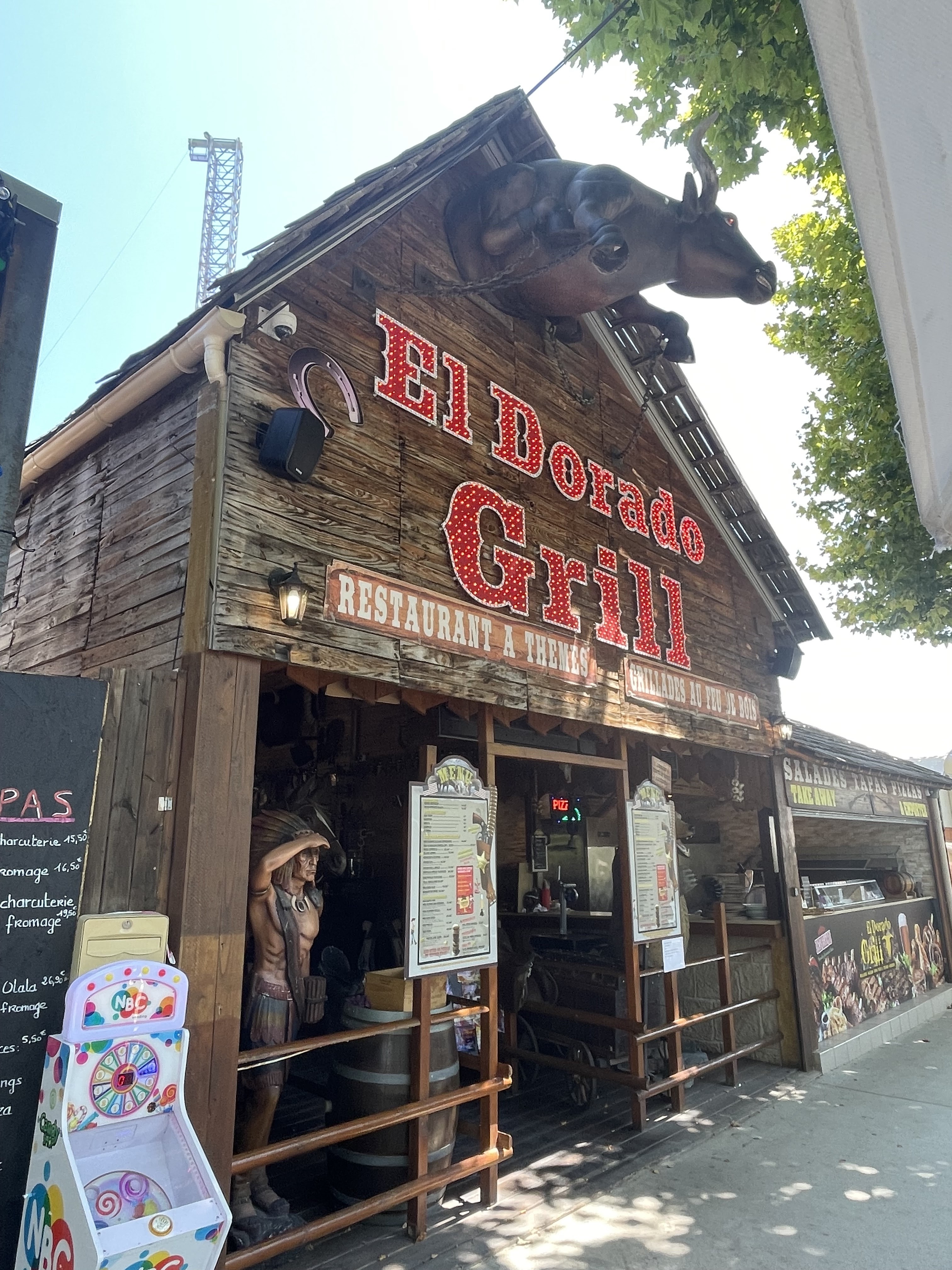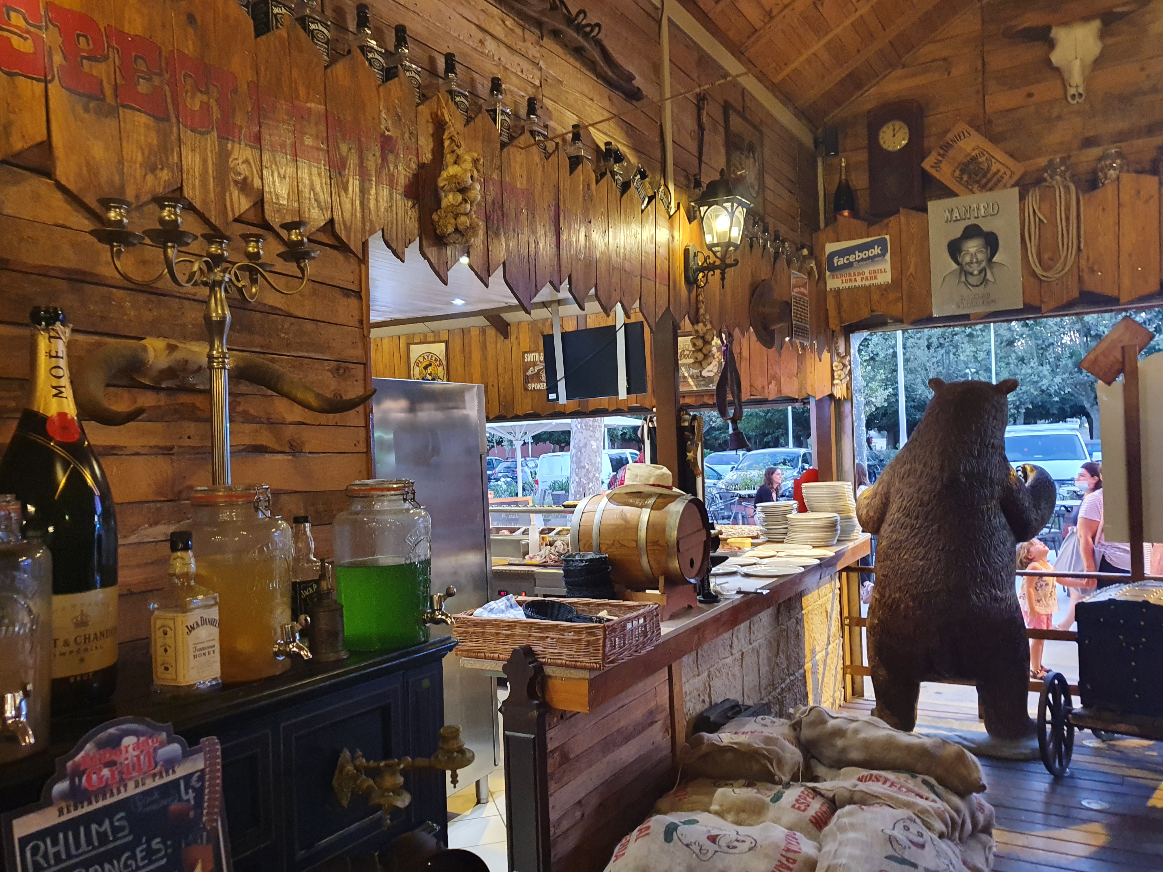 Un grill moyen : la carte des viandes est sympa, la cuisson de la viande est respectée mais les assiettes sont arrivées à peine tièdes et en décalage. Le point fort de l'endroit est sa déco Western et son intégration au parc d'attraction.
