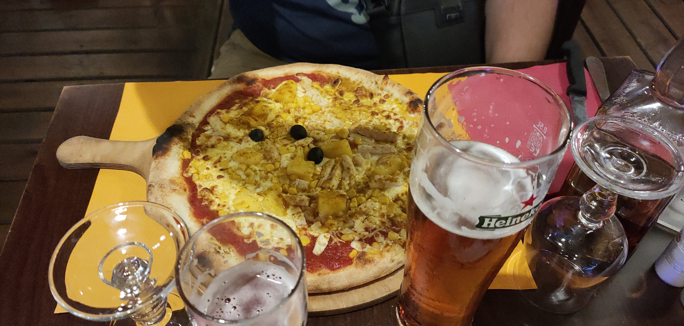 Pizza 🍕 Poulet curry ananas très apprécié par mon ami!😊 Hamburger Eldorado également très bon! Monaco exellent 👍🏻 serveuses très gentille 😊 malgré beaucoup de monde on à très bien manger et on nous a service assez vite ,on s'en est sorti pour 41,80 pour 2 plats et 2 Monaco un de 25cl et un de 50cl. Je recommande 👍🏻