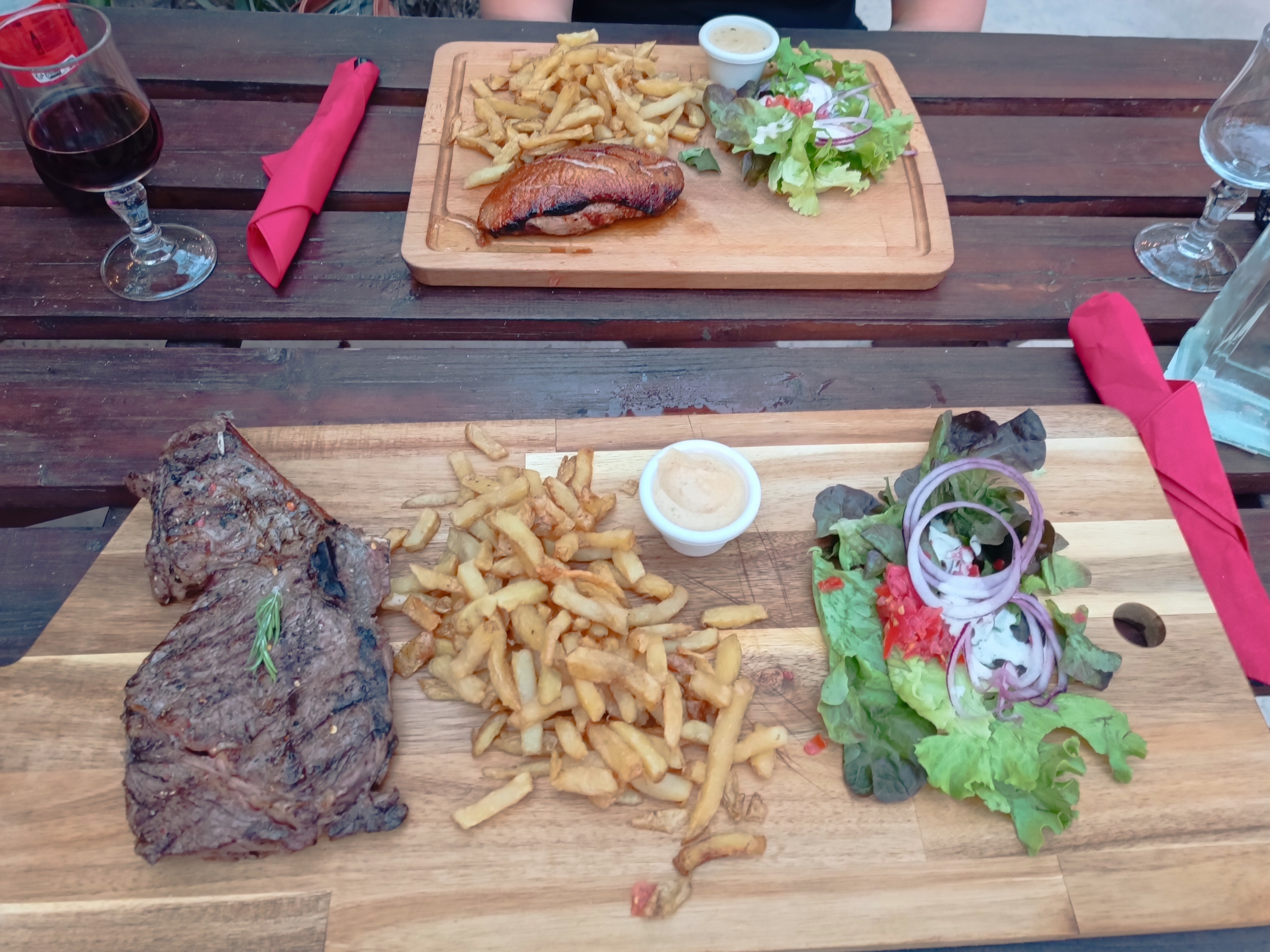 Je suis venue exprès pour leur entrecôte black angus et je ne suis pas déçue, la côte de taureau est un régal aussi ! Les frites maison ou country sont très bonnes également et n'oublions pas les desserts, mention spéciale pour les profiteroles, les choux sont trop bon, dommage ça ne se fait pas de lecher l'assiette...