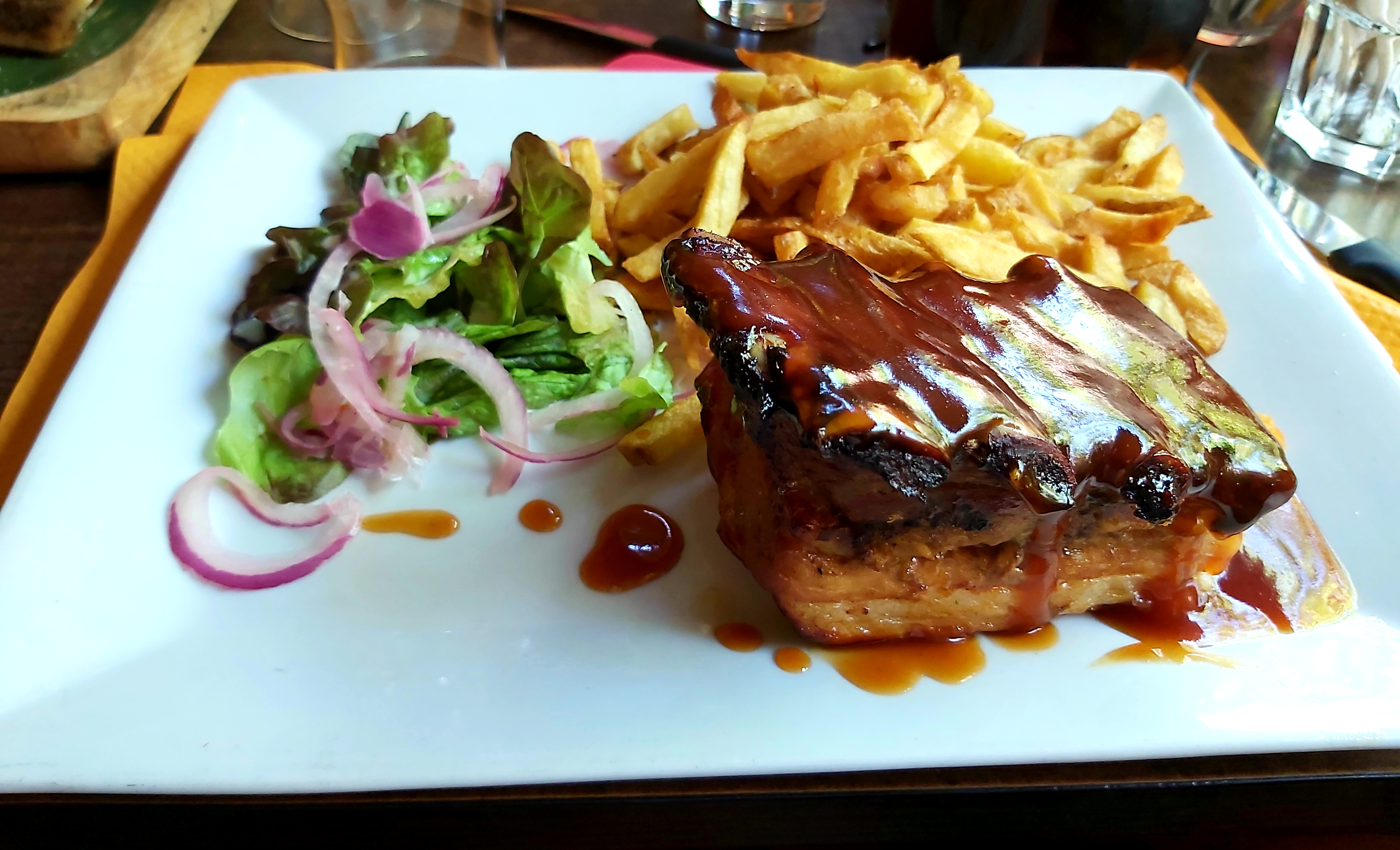 Visite le 13/08, après 1h d'attente, j'ai eu l'occasion de goûter des ribs sauce barbecue. La viande était élastique et caoutchouteuse en bouche donc immangeable bien que la petite sauce barbecue soit délicieuse pour tremper ses frites. Après avoir signalé cet incident aucun geste commercial au moment de payer la facture.