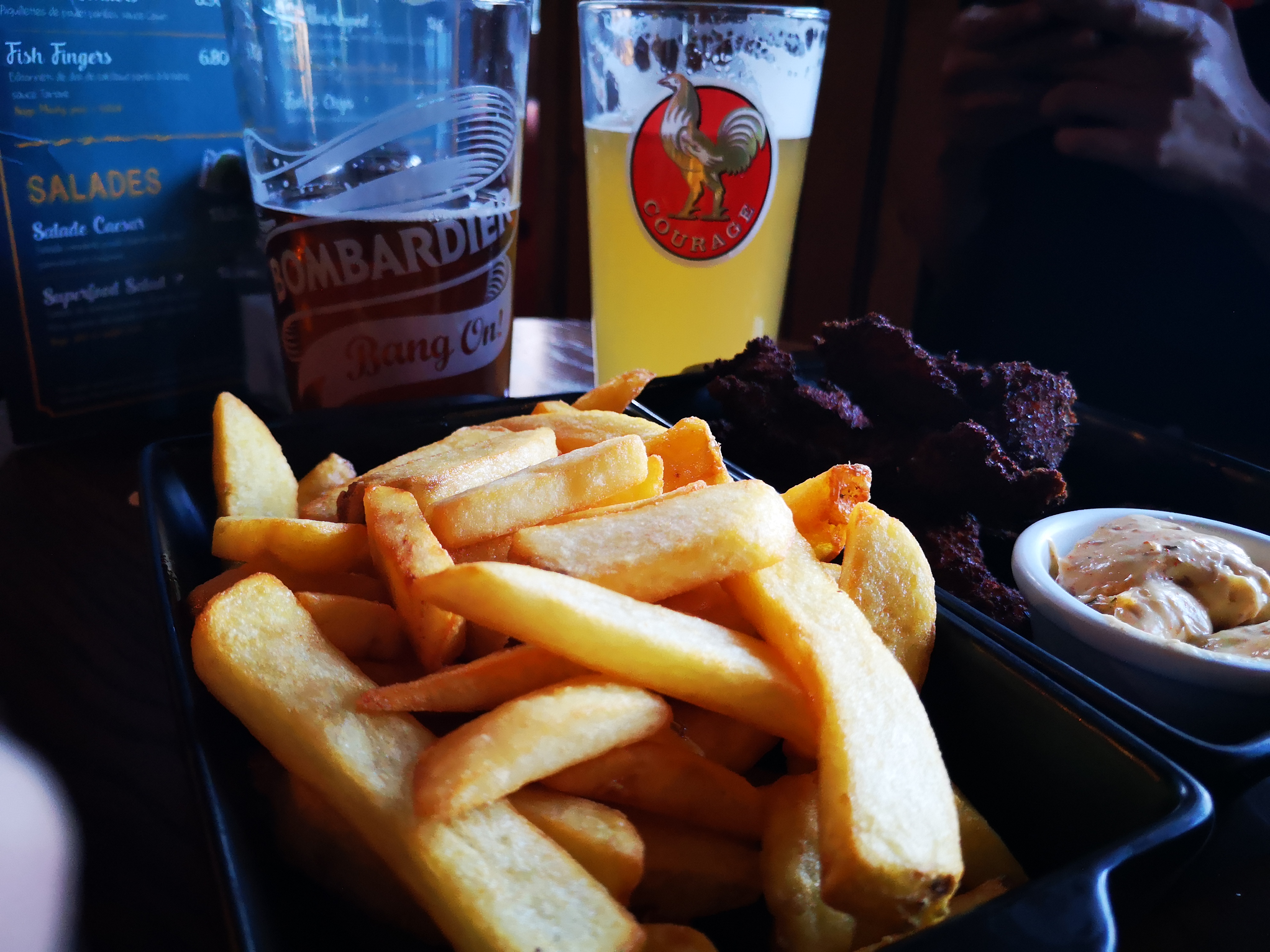 Très bonne bière, super service (le serveur nous a fait goûter la bière), les prix sont raisonnables, notamment pendant la happy hour et pour le bol de frites (3,5€ pour presque un saladier).