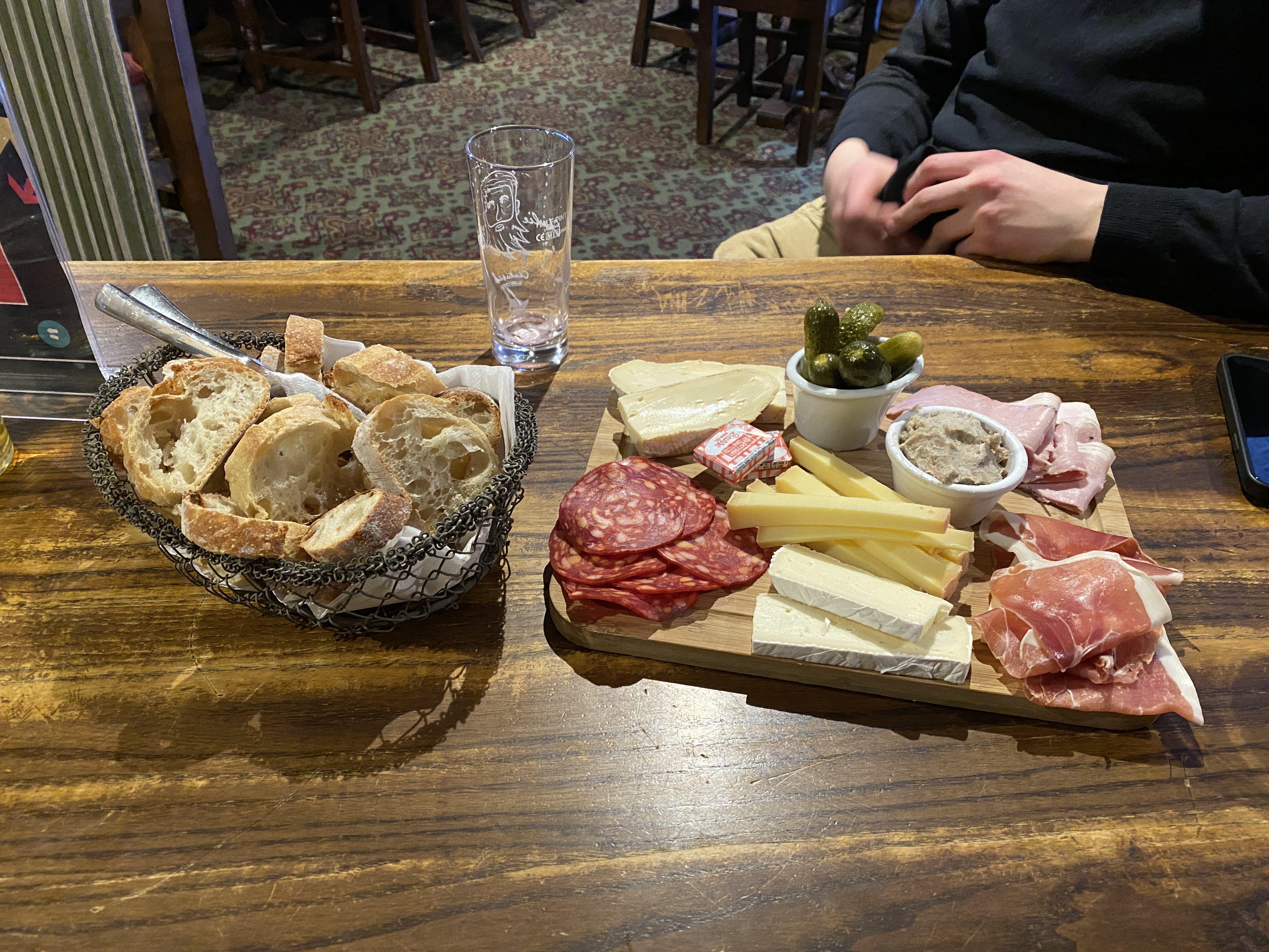 J'ai vraiment essayé de trouver un truc positif, mais à part le concert, et donc le chanteur, je n'ai pas trouvé... L'accueil a été froid, comme les courants d'air occasionnels et les places près des vitrines, les bières sont certes originales et importées mais pas ni inoubliables ni données. Pour être servi au bar il faut être placé à un endroit précis (au milieu) et si vous êtes un mètre à gauche ou à droite on vous ignore totalement. Le service très moyen, les serveuses s'arrêtent de servir pour discuter alors qu'une dizaine de clients font la queue depuis une dizaine de minutes. Et n'essayez pas de poser une question pendant qu'une serveuse tire une bière, pas de multitasking. Le summum de la soirée a été la planche mixte. Je n'ai jamais vu des produits d'aussi pauvre qualité sur une planche à ce prix. Je sais qu'on est dans un pub anglais, faut pas s'attendre à grand chose. Mais quand le pub écossais d'en fasse sort un foie gras maison qui déchire, on s'attend tout de même pas à ça. Du sous-vide de premier prix, et deux morceaux de pain (Le pain était bon). Et vu la qualité et le prix, on s'attend à un peu plus de quantité. Bref, on a kiffé la musique, même si du côté des toilettes les enceintes grésillaient bien, on suivra le groupe ailleurs, et on consommera ailleurs aussi pour ne pas partir si déçu.