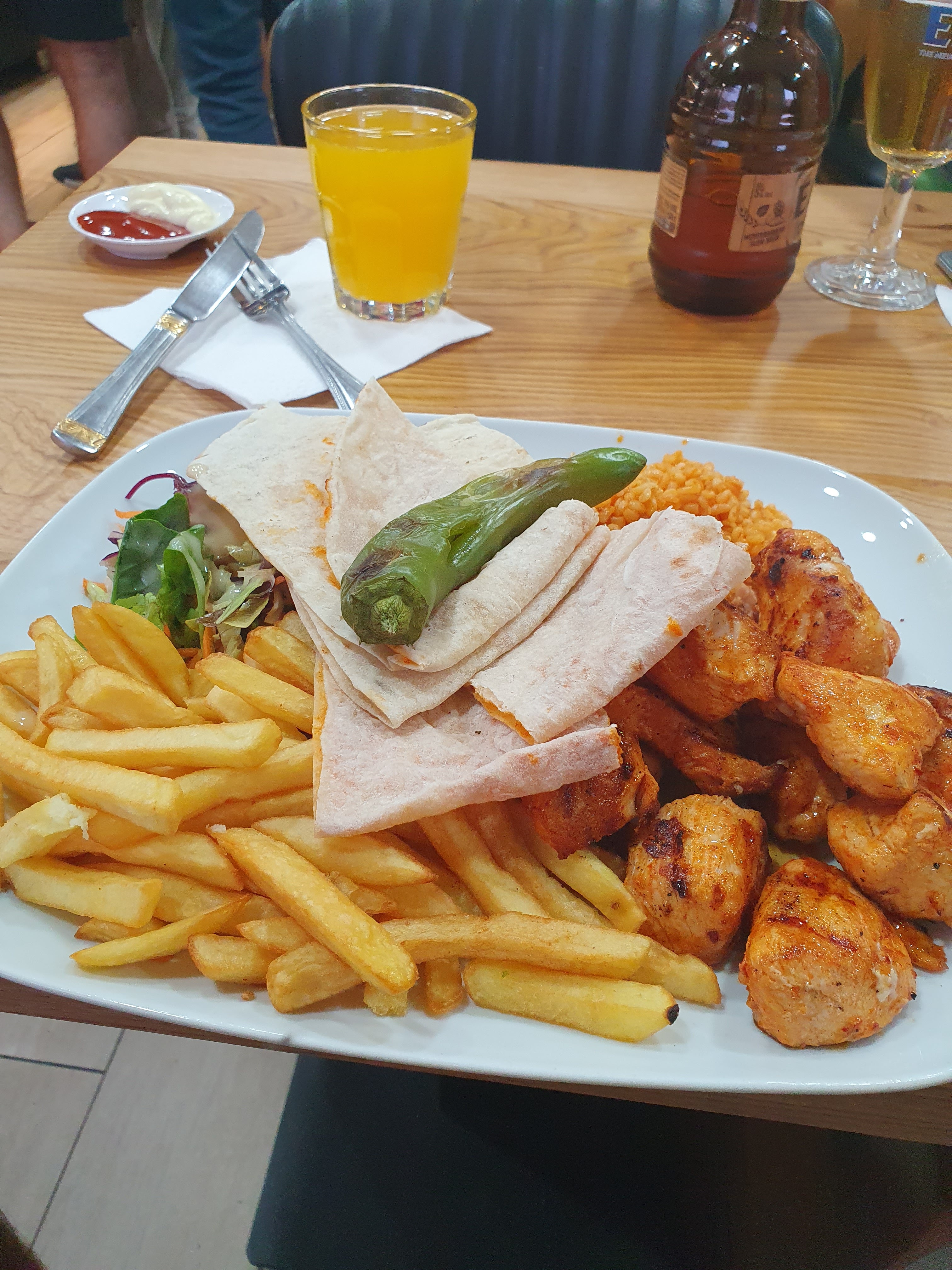 La nourriture est bonne mais les quantités et les prix sont exagérés , 8€ pour une petite portion de frites et 1 brochette de poulet ! Je n'y retournerai pas.
