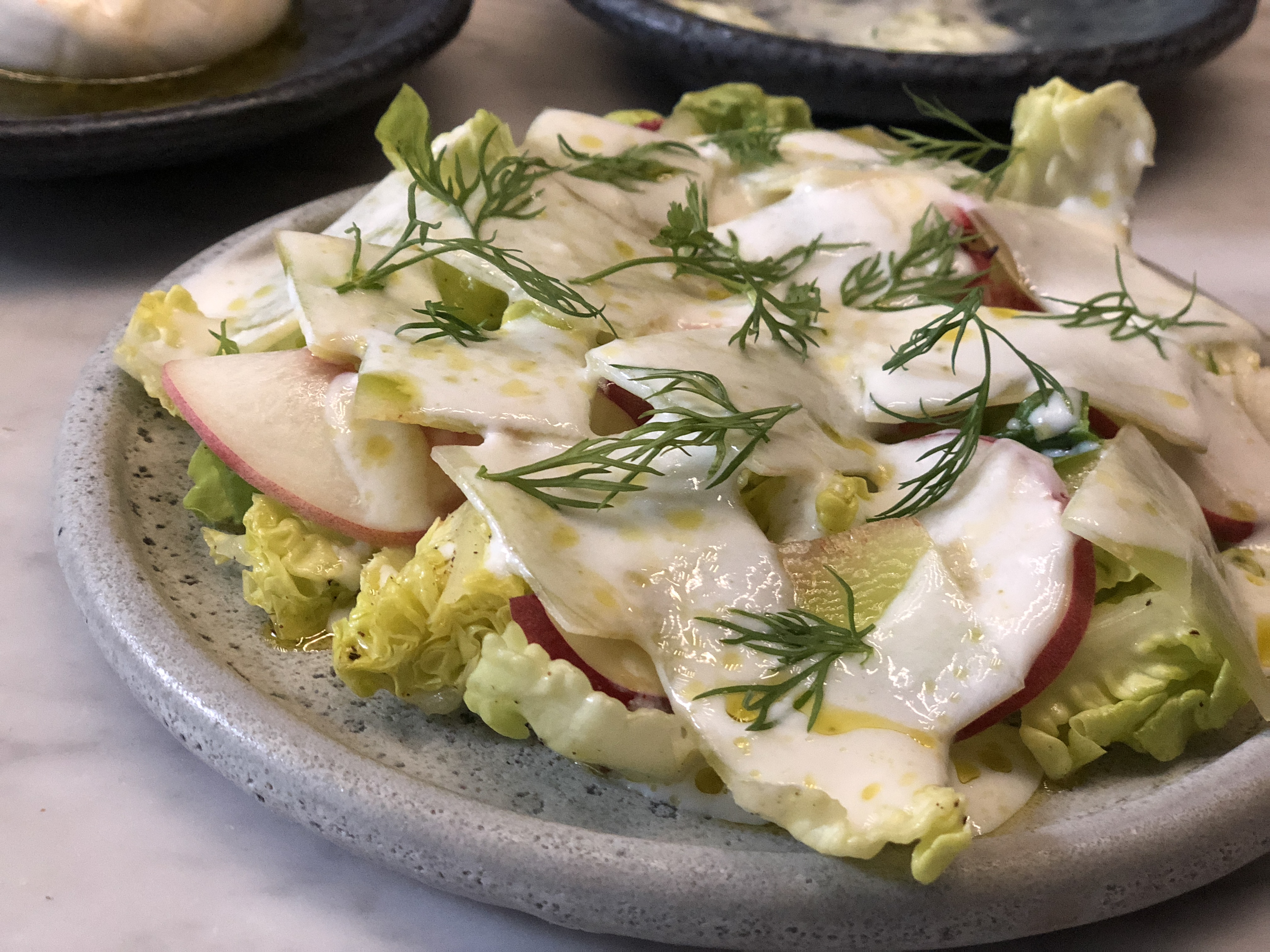 Nous étions les seuls non-habitants à déjeuner dans ce restaurant américain, ce qui est bon signe. C'était chargé mais bien rythmé avec des cours arrivant à intervalles réguliers. Salle petite mais bien organisée la nourriture était intéressante avec des influences végétales. Il semblait que la moitié des gens avaient commandé le sandwich au poulet que j'avais auparavant chez Verjus, alors nous avons essayé différentes choses. La formule était bon marché et le riz au lait se démarquait vraiment.