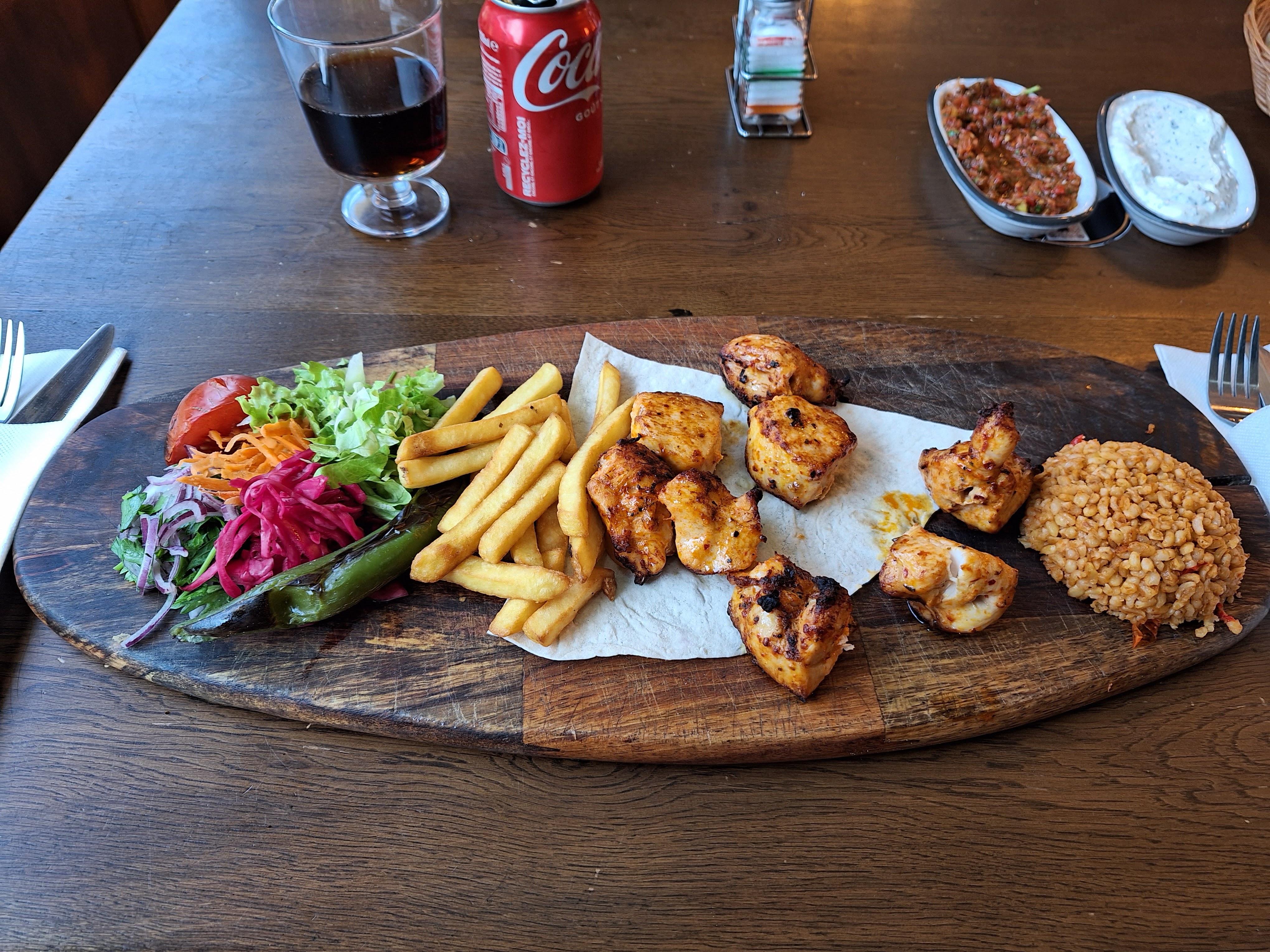 Sans plus, les grillades trop cuites à mon goût, brochette de poulet pas assez goûteuse, pour une assiette à 19€ je m’attendais à mieux…