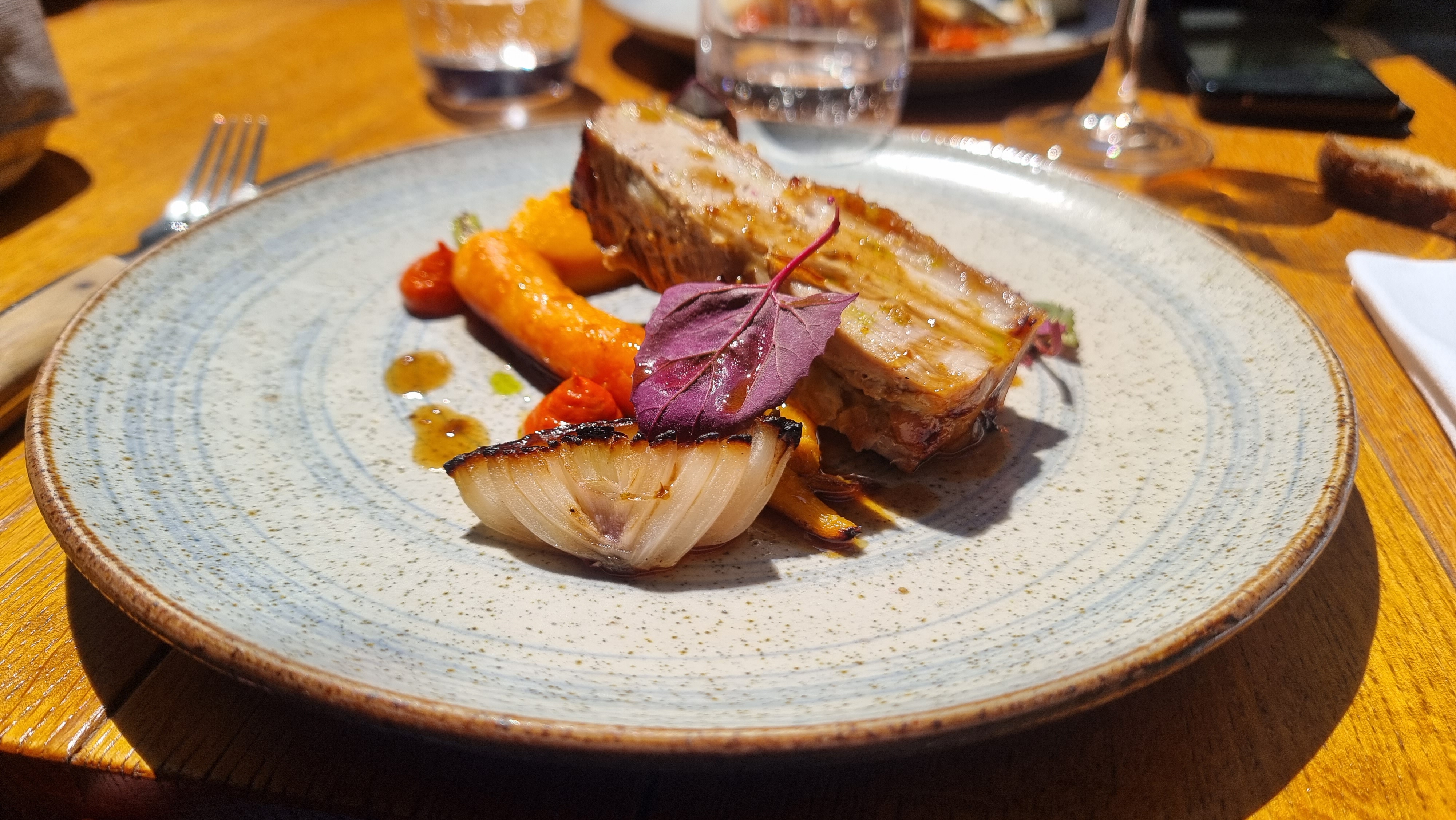 Cadre élégant, service impeccable et bistronomie chic. Délicieuse lotte partagée à 2,