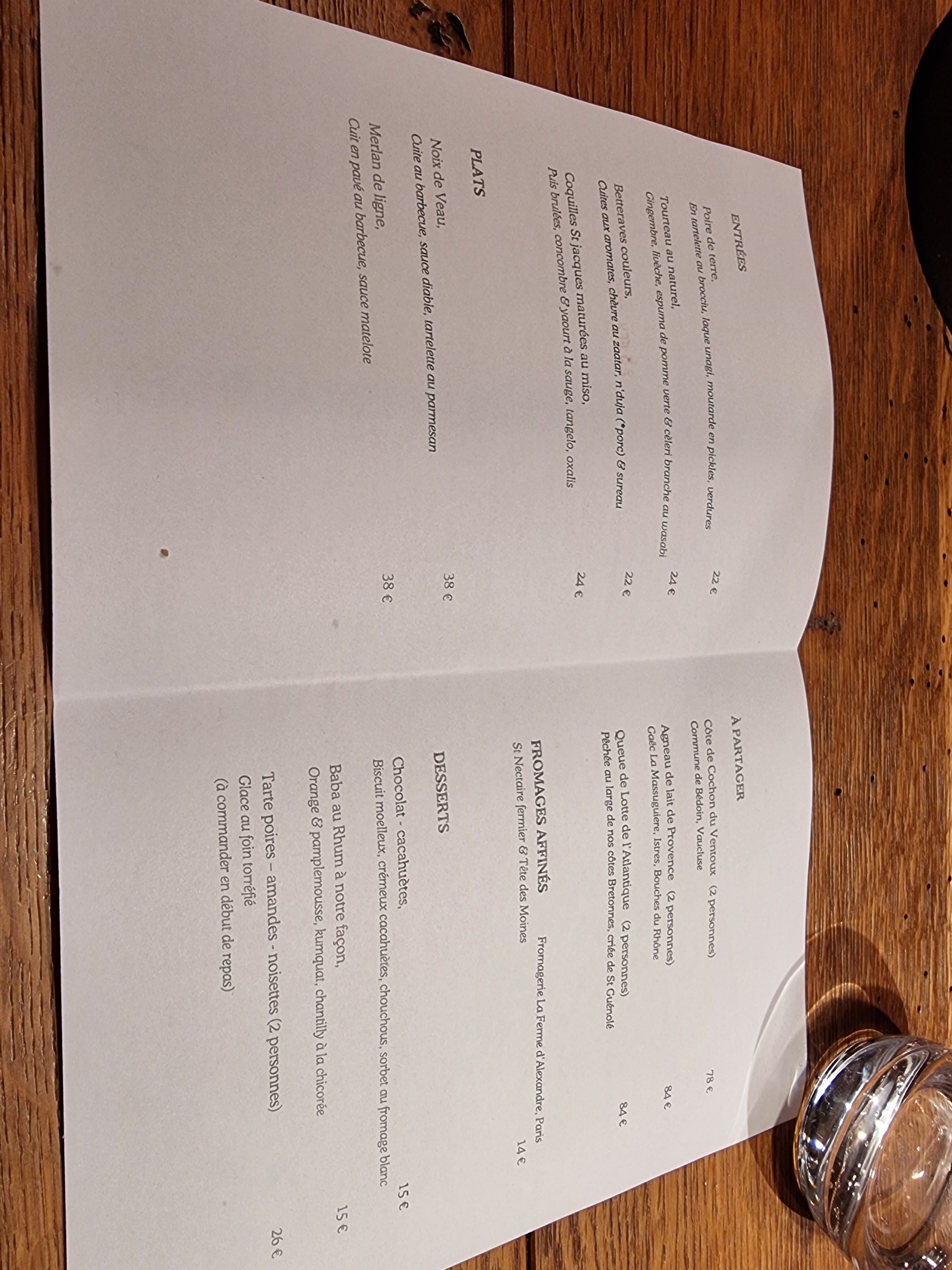 Service très accueillant et agréable, très bons vins, mais côté cuisine cela manquait de peps. Les Saint-Jacques au yuzu étaient bonnes mais on ne sentait quasiment pas les saveurs, le veau a partager était d'excellente qualité mais l'accompagnement aurait mérité un peu plus de saveurs, le dessert (crémeux au citron) était très bon. Pour le prix j'attendais plus de la cuisine !