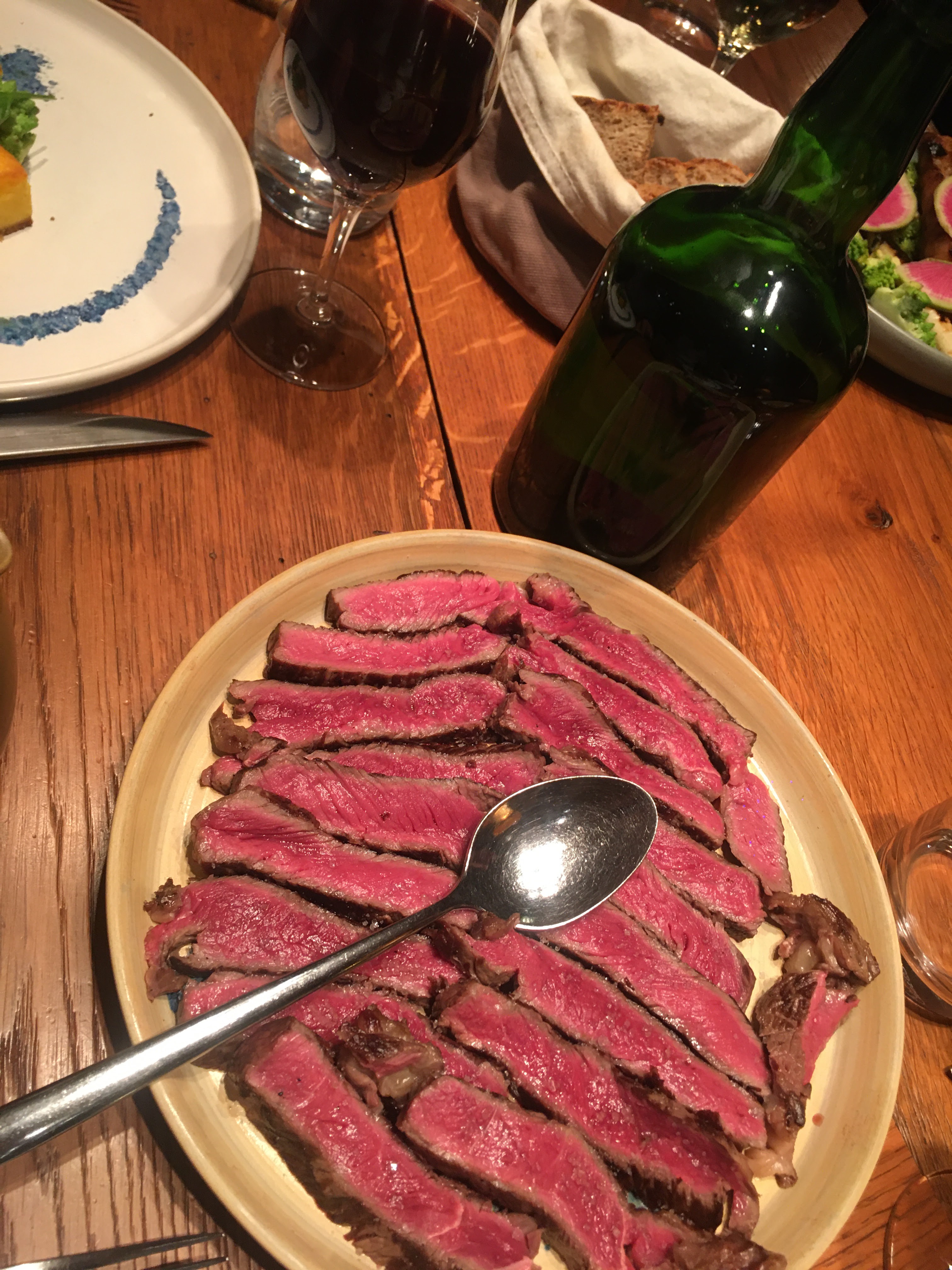 Ici, le pire côtoie le meilleur. Le meilleur, c'est la qualité des ingrédients et leur fraîcheur. Par exemple le faux-filet de bœuf, très bien. Mais passer au barbecue une longe, est-ce de la cuisine ? Le pire, c'est le reste : . des produits mal travaillés. Je pense notamment aux raviolis au ris de veau, durs, secs et insipides. . la radinerie des portions, vraiment petites, même pour le pain : 3 tranches minuscules pour 4 personnes. . les prix : c'est cher, nourriture et vins, avec une carte des vins qui ne propose presque rien sous les 40 euros. . le service en mode on est une bande de potes super-cools, qui passerait dans un bistrot à 30€ en EPD, mais pas ici. . le bruit, vraiment fatiguant . un seul WC pour 50 clients... . la lenteur du service . l'impossibilité de dîner à 20h00 ou 20h30, car il faut faire deux services, rentabilité oblige ! . enfin et presque surtout le manque terrible d'originalité et de maîtrise de la cuisine. On dirait que le chef assemble ce qu'il a sous la main un peu au hasard, et évidemment, ça ne fonctionne pas. En gros, de la mauvaise cuisine d'assemblage. Le pire l'emportant nettement sur le meilleur, je déconseille ce restaurant.