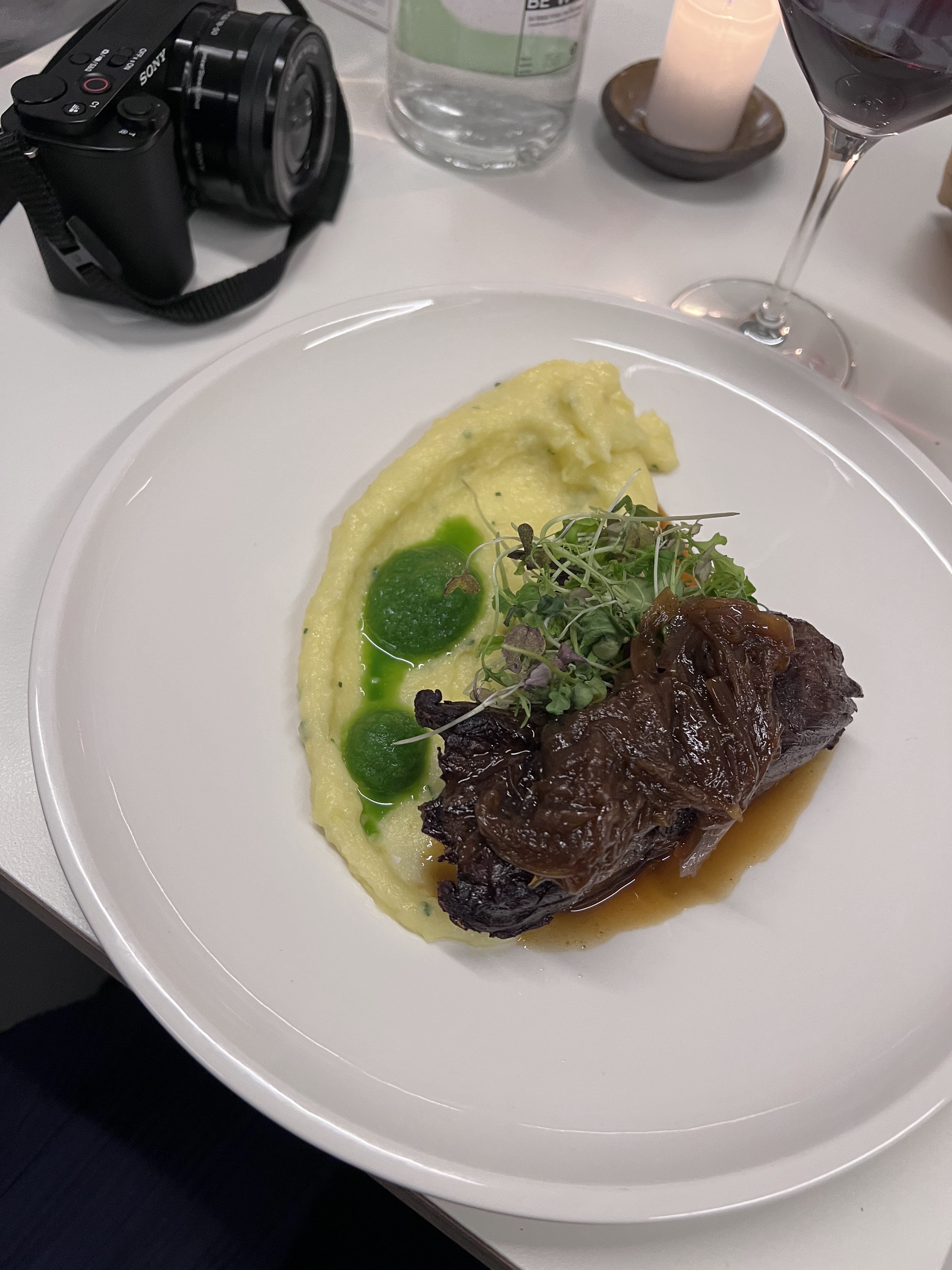 Plat vegetarien trop cher. Bon, mais le rapport qualité/ qté/ prix laisse à désirer. Cafe gourmand bon mais là aussi, excessif niveau rapport qlté/ prix. Vin très bon. Conclusion: trop cher.