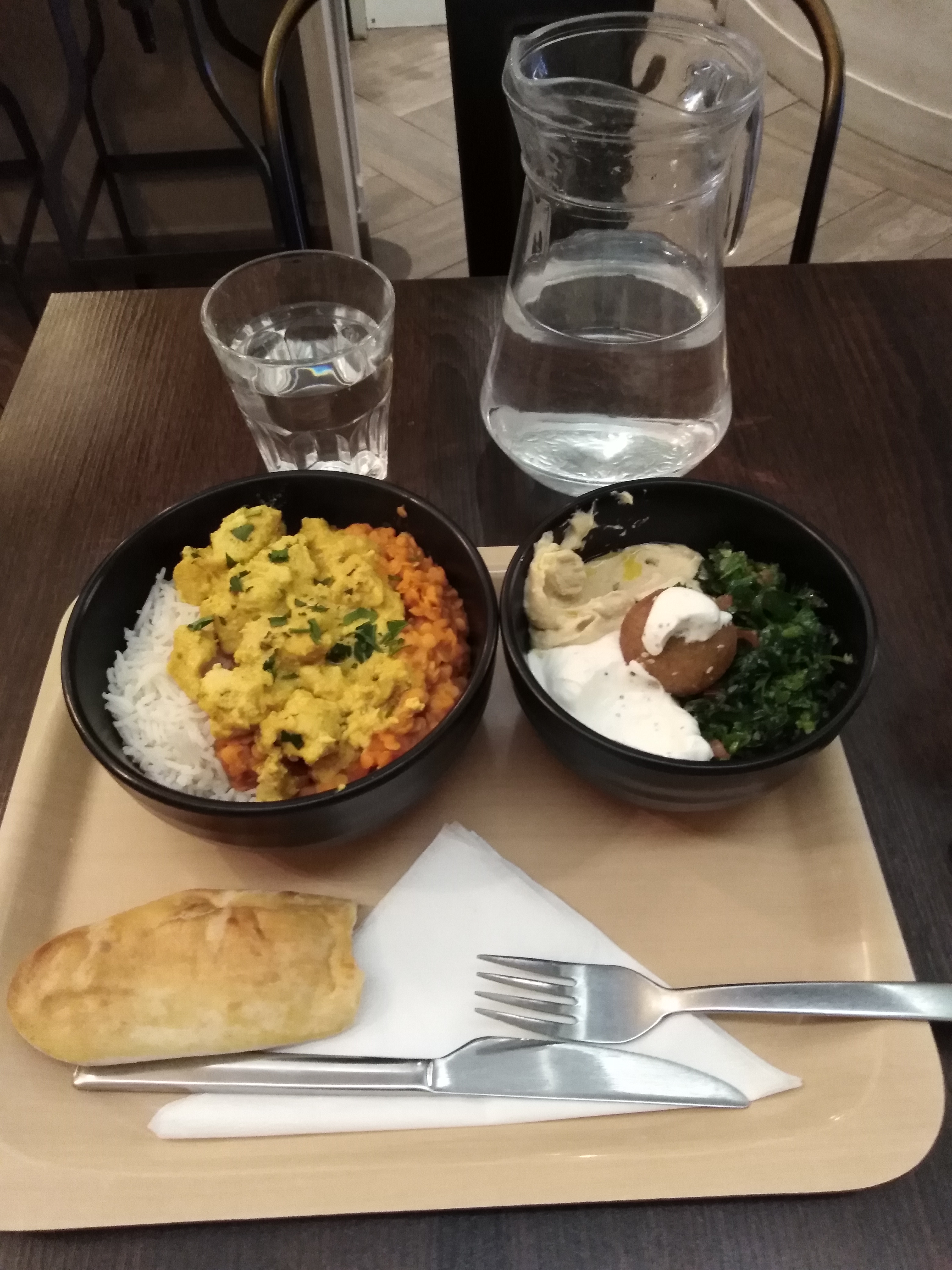 Plats sains service assez rapide. Nous avons cependant trouvé les plats un peu secs. Les plats manques d'une touche de fraîcheur (légumes verts, sauce...). Les falafels manquaient de cuisson. Malheureusement même reproche constaté pour les sandwichs.