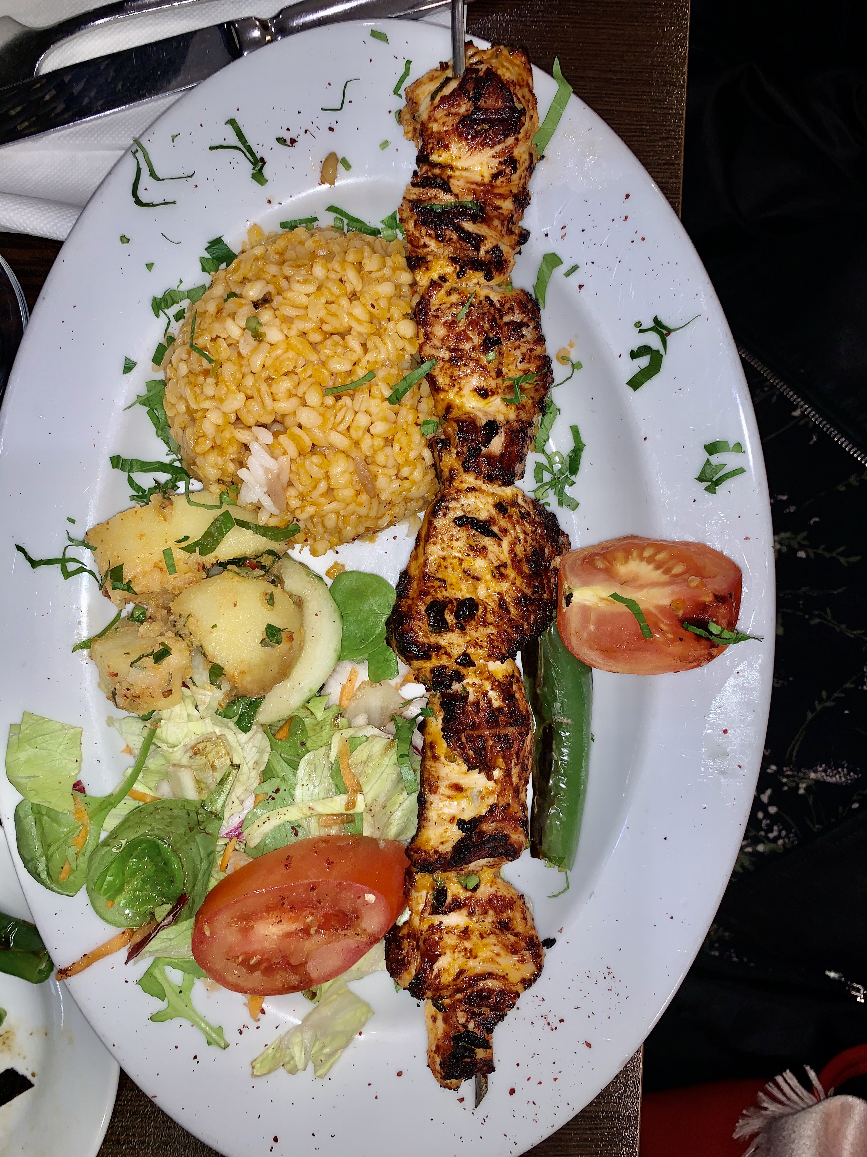 Le poulet était bon. Mais payer 21€ pour 1 petite brochette de poulet + salade et bulgur (sans goût) c’est énorme d’autant plus que : L’hygiène était déplorable Les serveurs n’étaient pas accueillants. Et les toilettes sont à vomir. Je ne recommande pas ce restaurant.