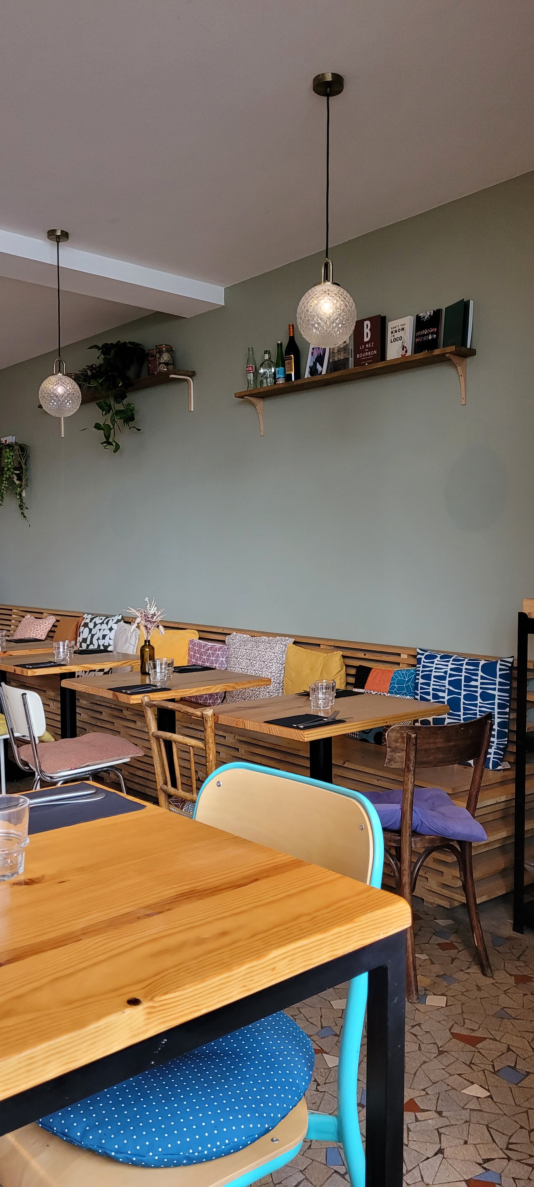 La déco du lieu est apaisante...style petit resto espagnol ou on va manger en vacance en toute dilletante.....coussin de couleurs, sol en mosaïque, petite terrasse ombragée...un petit écran de tranquillité. Et la cuisine....produits frais bien travaillés et bien présente! Les assiettes sont colorées, les plats goûteux....à léger son assiette! Le personnel super accueillant....en toute simplicité....je recommande! 10/10....on frôle la perfection! Un bijou ce petit resto et prix très correctes!