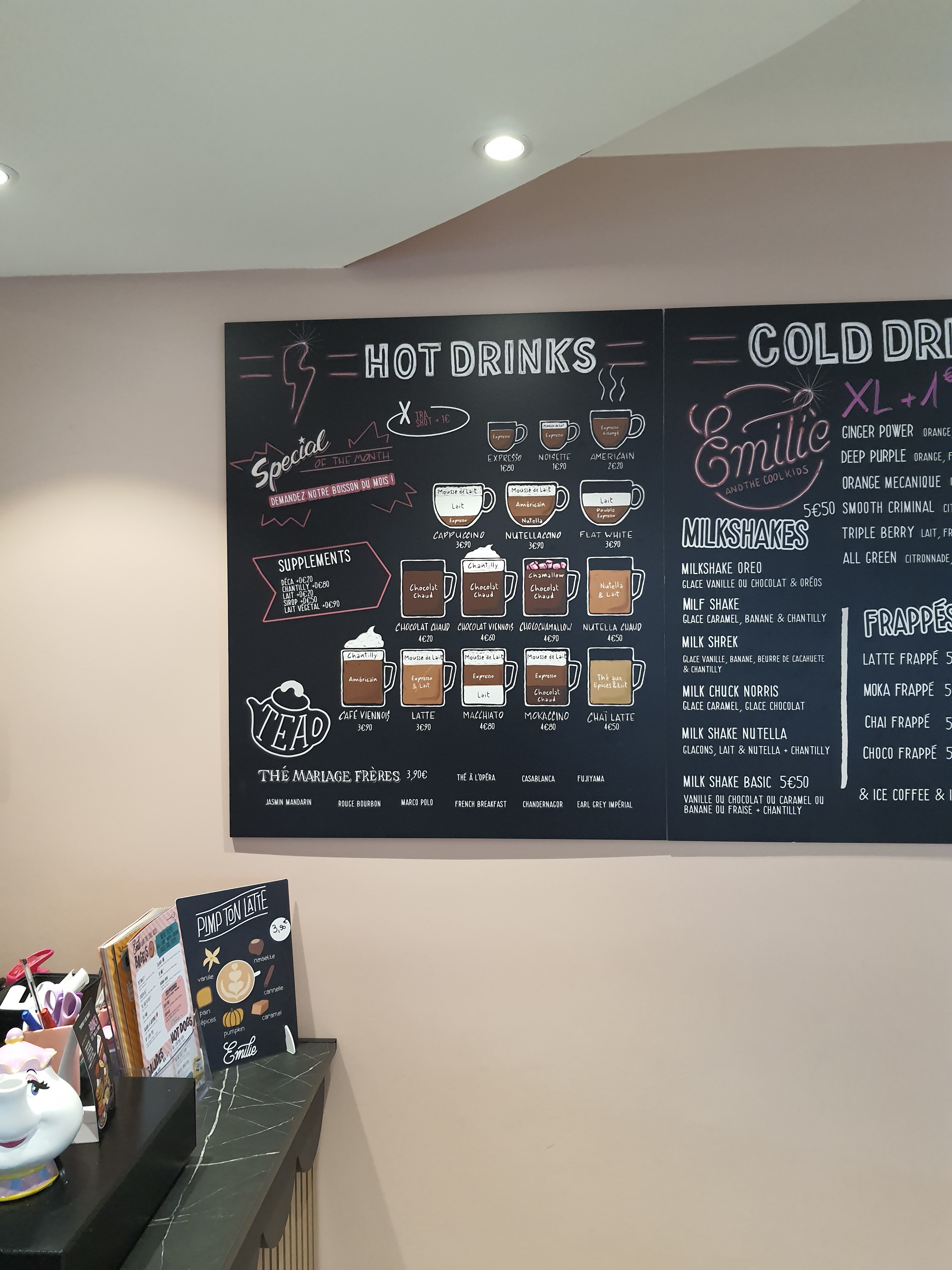Décevant , le concept à l’origine vous donne envie de rentrer, une fois dedans, vous tombez sur la patronne hautaine, arrogante. Les mets sont chers , un cookies à 4 euros ! Une salade verte avec 2 tranches de chèvres à plus de 10 euros !! Allez vous rassasier avec de la salade verte. Ça gratte de partout! Surpris … la citronnade à la violette est bonne , rien à dire J’ai pu lire que ça fait 20 ans de métier ?? 20 ans a corriger les clients à travers les avis, les palabres de 2 plombes et donneuse de leçon. Y’a le temps pour cela. Ce serait bien que la franchise s’en occupe un peu et recadre un peu les choses. Dommage “Émilie and the cool kids” est un très bon concept, sympa, ici il est juste très mal tenu ! Vivement que ça change