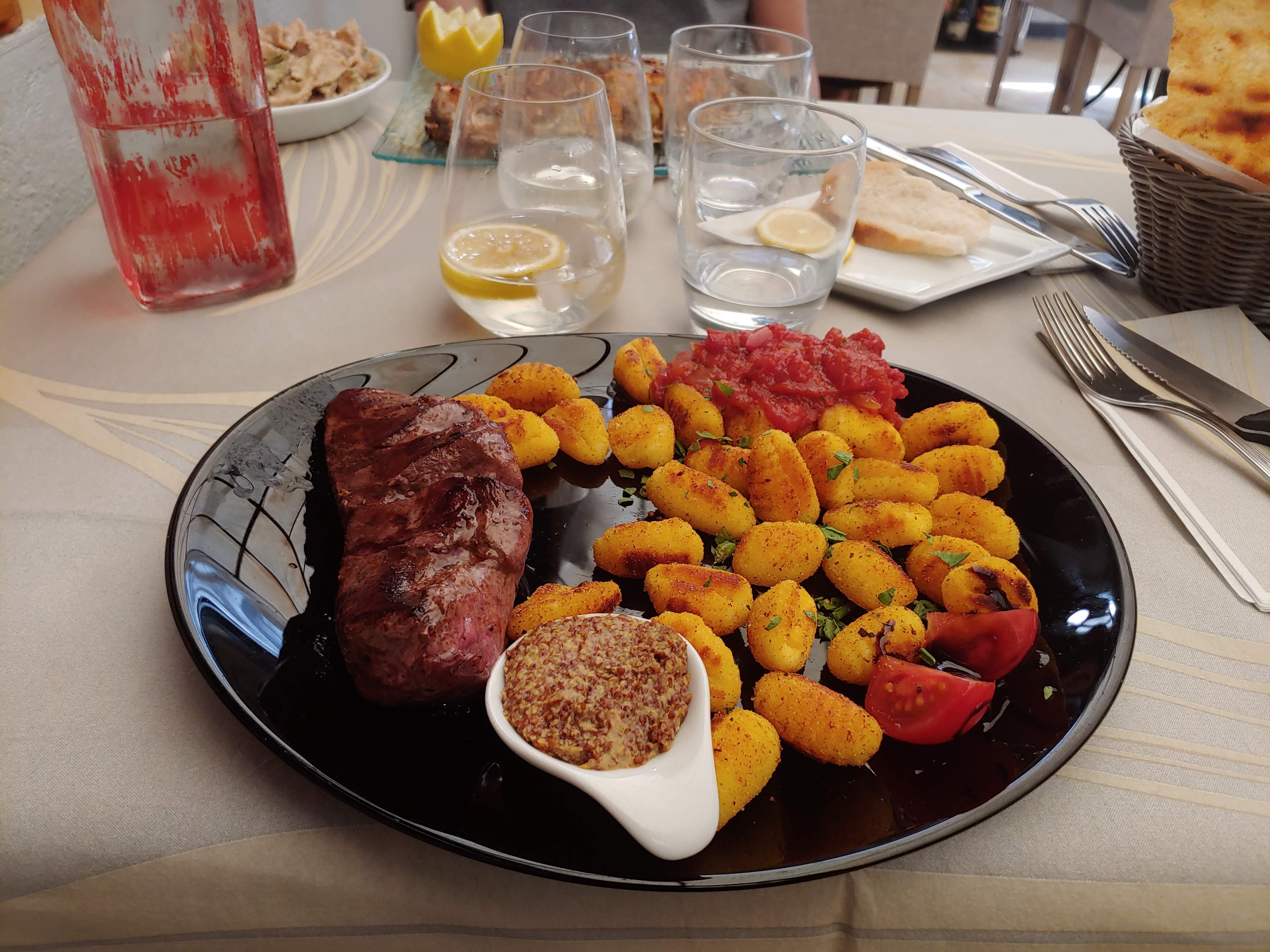 J'ai eu les gnocchis avec des saucisses farcies au fromage parmiguano et c'était incroyable. Sehr a même accepté mon allergie aux œufs.