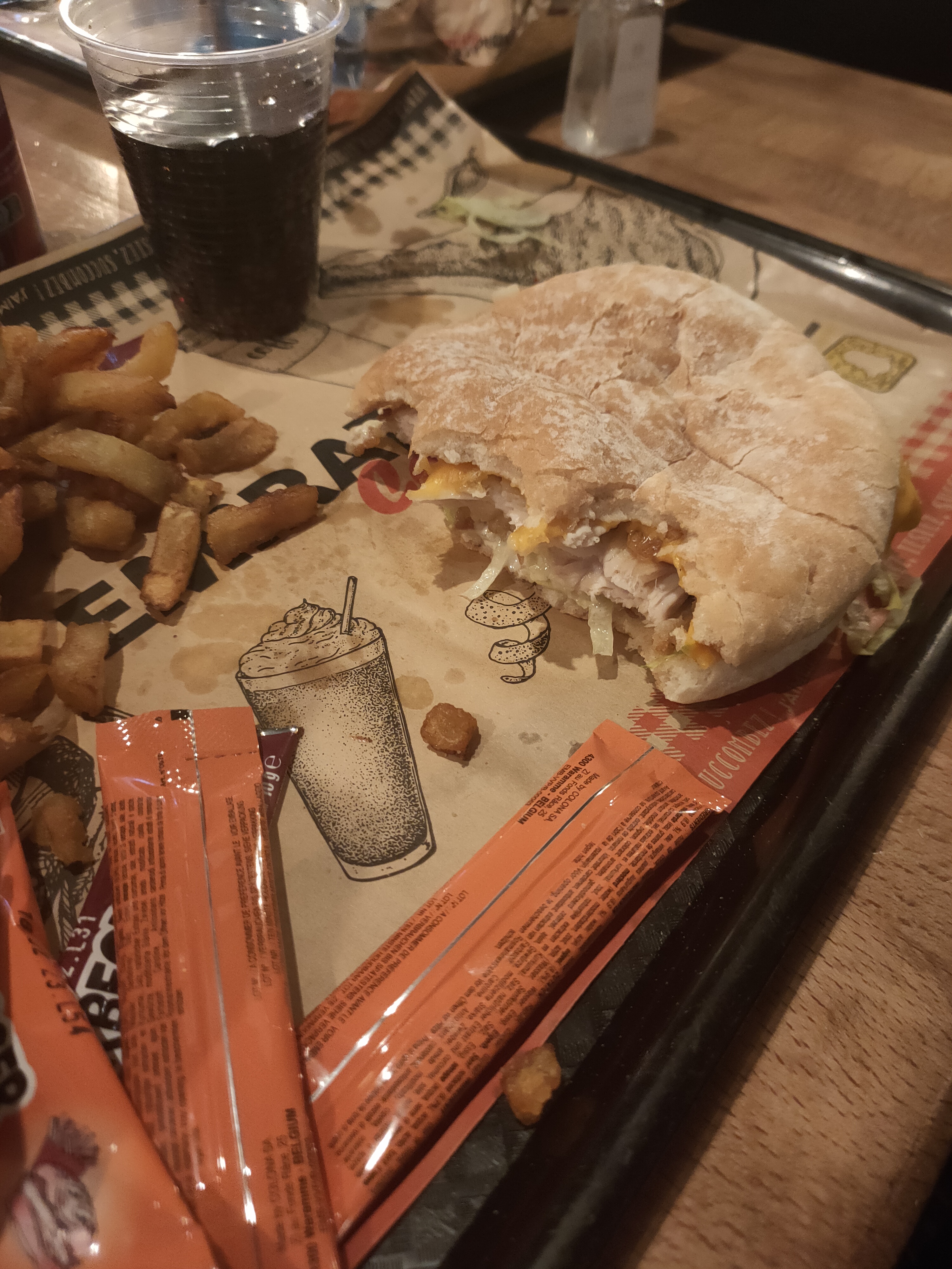 J'ai acheté à emporter je suis déçue de la qualité et de la quantité de nourriture que j'ai retrouvé en arrivant chez moi, 10 frites par sachets, des tacos aussi plats que des paninis... vraiment c'est la 2e fois que je prends la bas je n'irais plus, la 1ere fois Wrap poulet sauce forestière je cherche encore les champignons... bref je me suis dis on laisse le bénéfice du doute. Je trouve que c'est sur côté en tout cas pour le emporter je ne recommande pas du tout.
