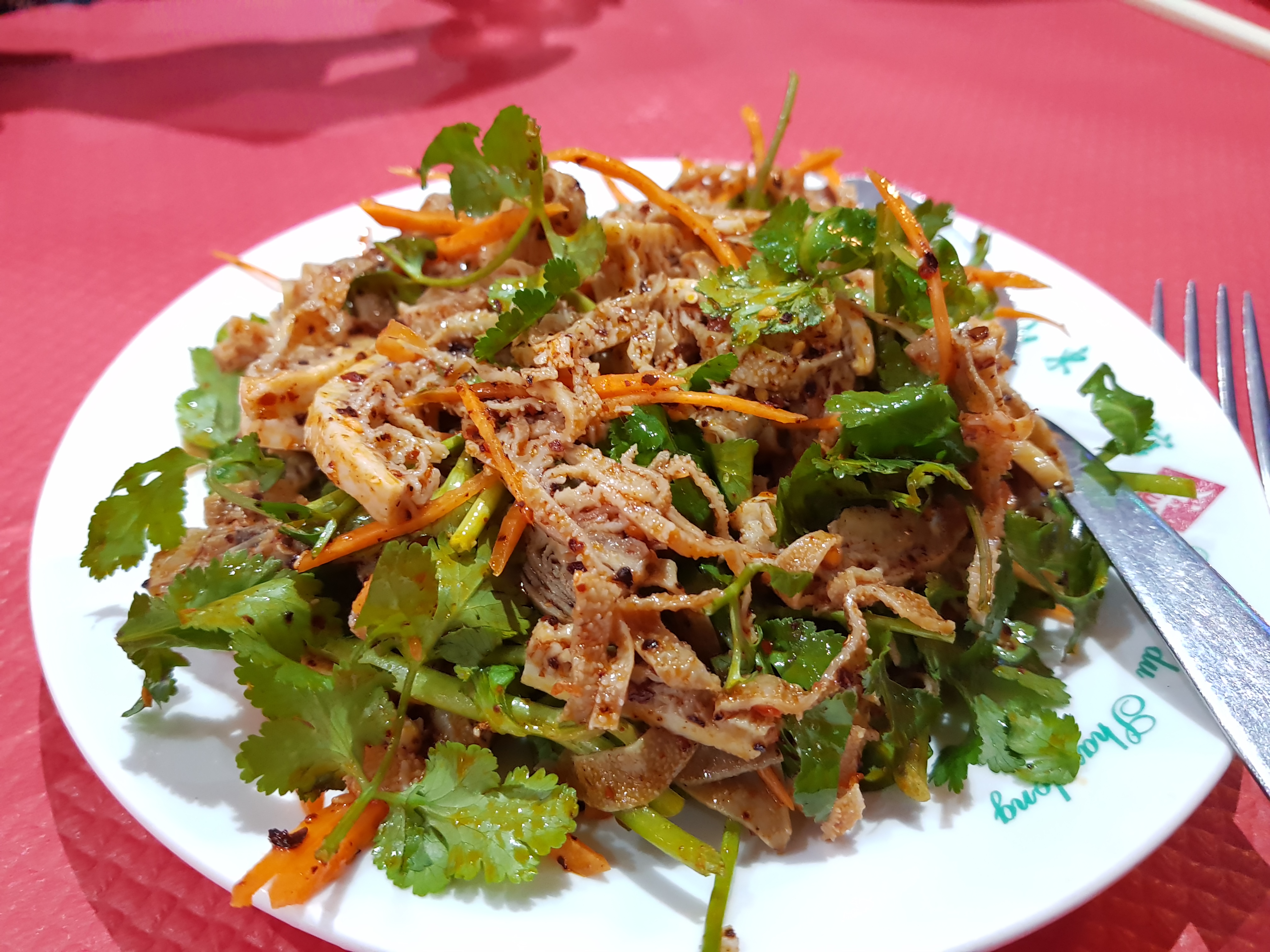 Specialité de Shandong. J’ai pris ce plat et ma copine a pris les raviolis de poissons - aussi une spécialité de la région. C’est délicieux ! En entrée, on a pris salade de pomme de terre, une découverte pour moi que j’ai beaucoup aimé.