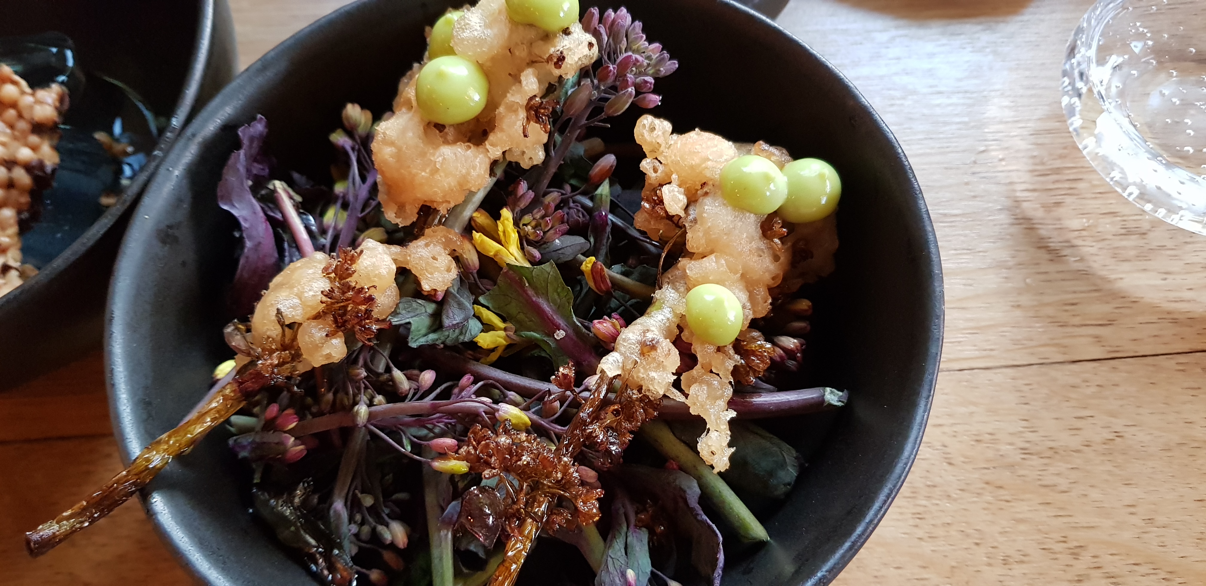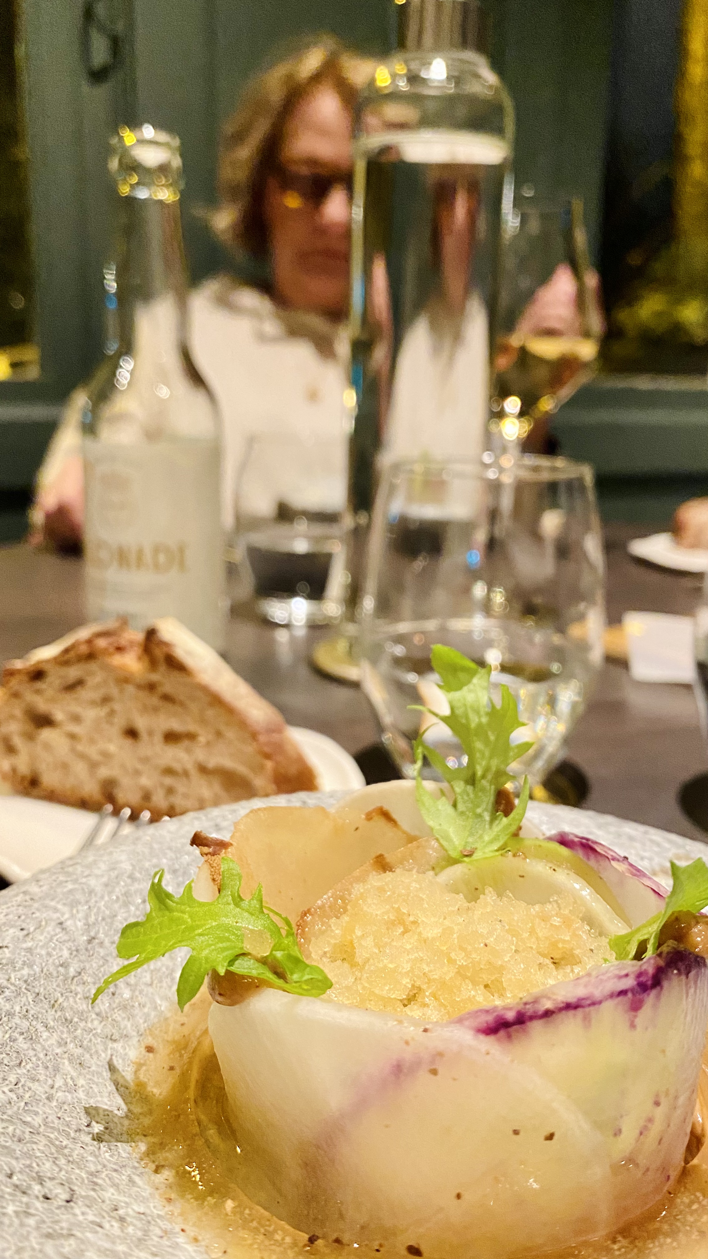 Ambiance douce et chaleureuse, hôtes accueillants, et au centre de tout ça une cuisine d’auteur, centrée sur le végétal sans exclure les autres produits, avec des préparations, cuissons, assemblages maîtrisés et d’une grande justesse. Le repas peut s’accompagner d’un accord de vins bios ou natures réservant de belles surprises, telles qu’un vin orange ou une bière de fermentation spontanée. Nous y avons passé un très agréable moment !