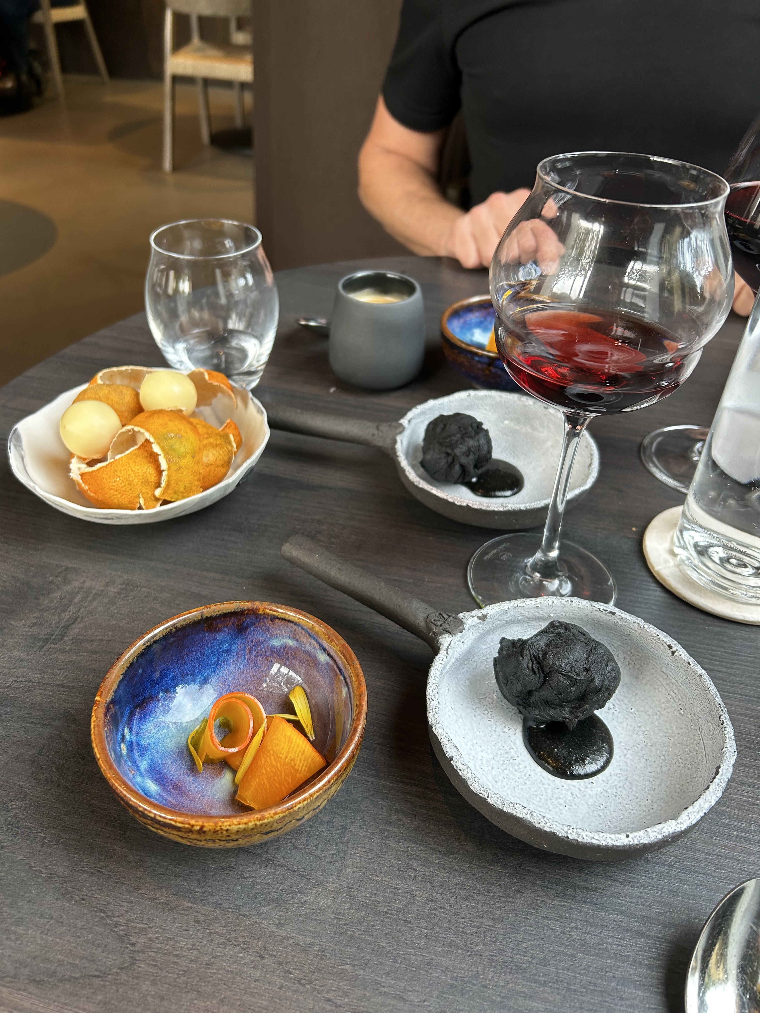 Un repas d’exception du début à la fin. L’accord mets/vins est exceptionnel. Tout y est, l’endroit, la vaisselle en céramique sont un bel écrin pour cette cuisine raffinée, contrastée et inventive. Un excellent moment !
