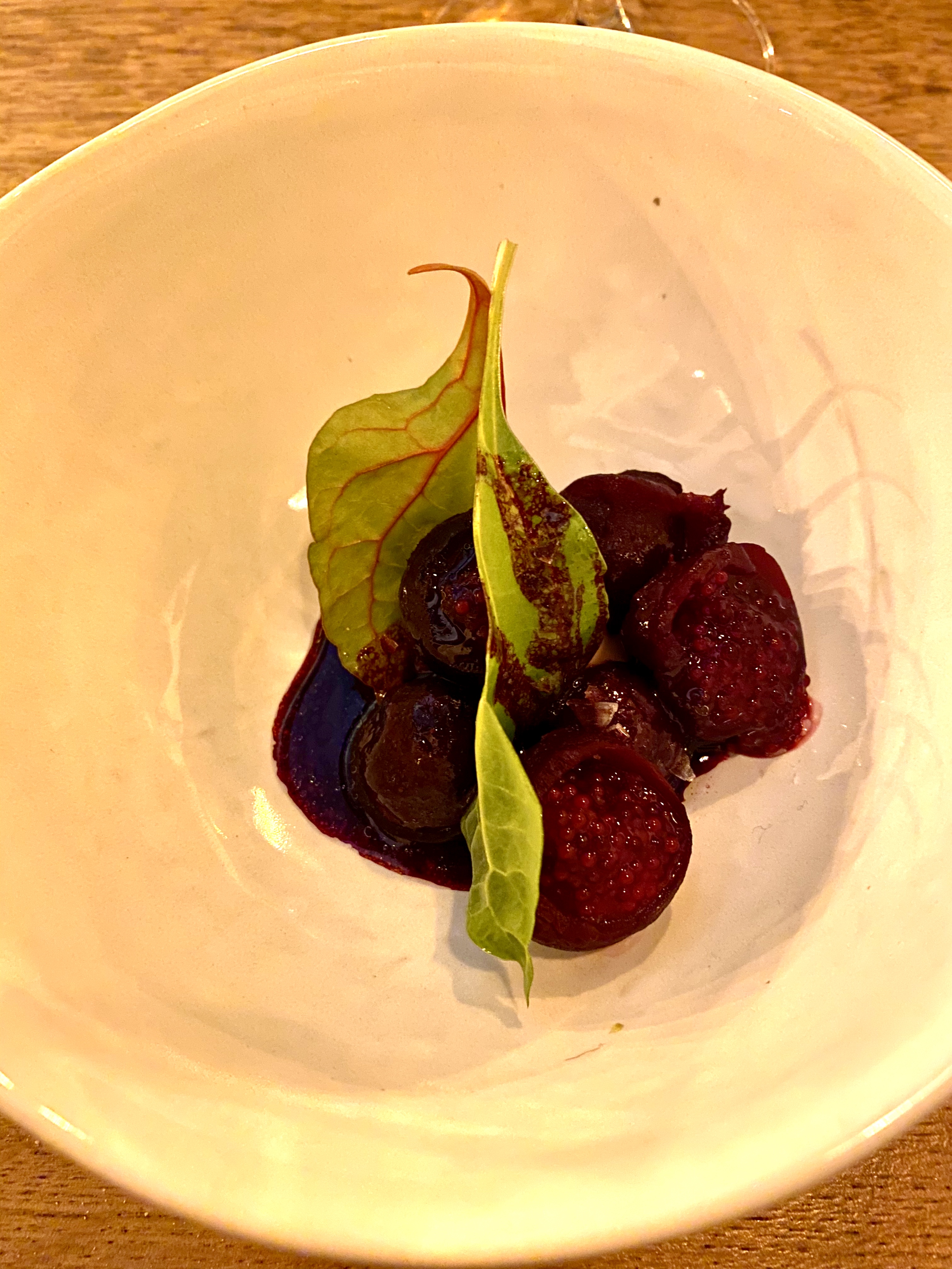 Une cuisine inventive et savoureuse avec un travail extraordinaire sur les légumes. De vrais desserts de haut niveau entre le salsifis à la vanille et le beignet au charbon. Des tueries