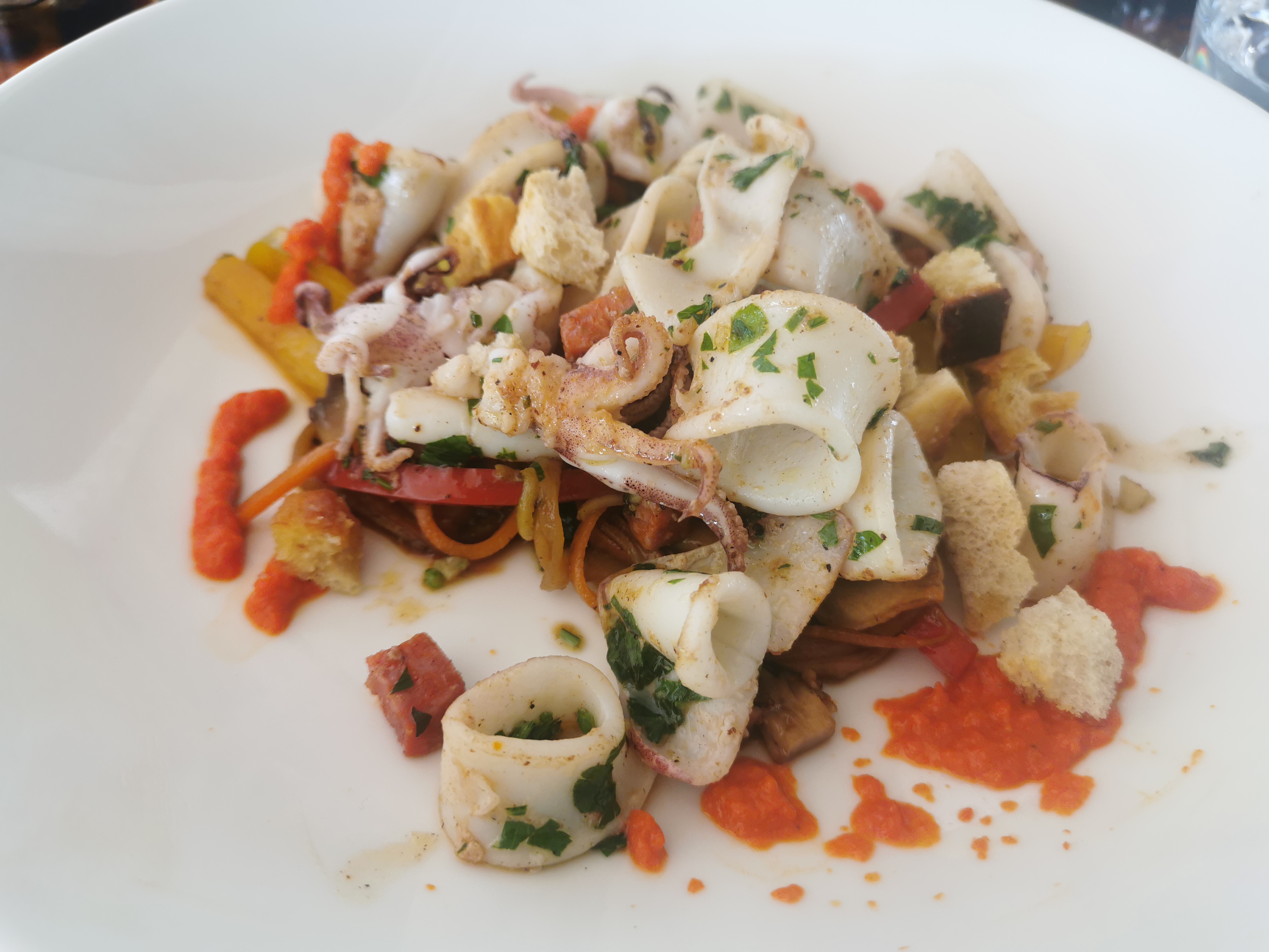 Belle vue et doit être très agréable en été. Mon plat du jour n'était pas très bien cuit et l assiette brûlante mais les poissons de mes amis très bien présentés et apparemment excellents.