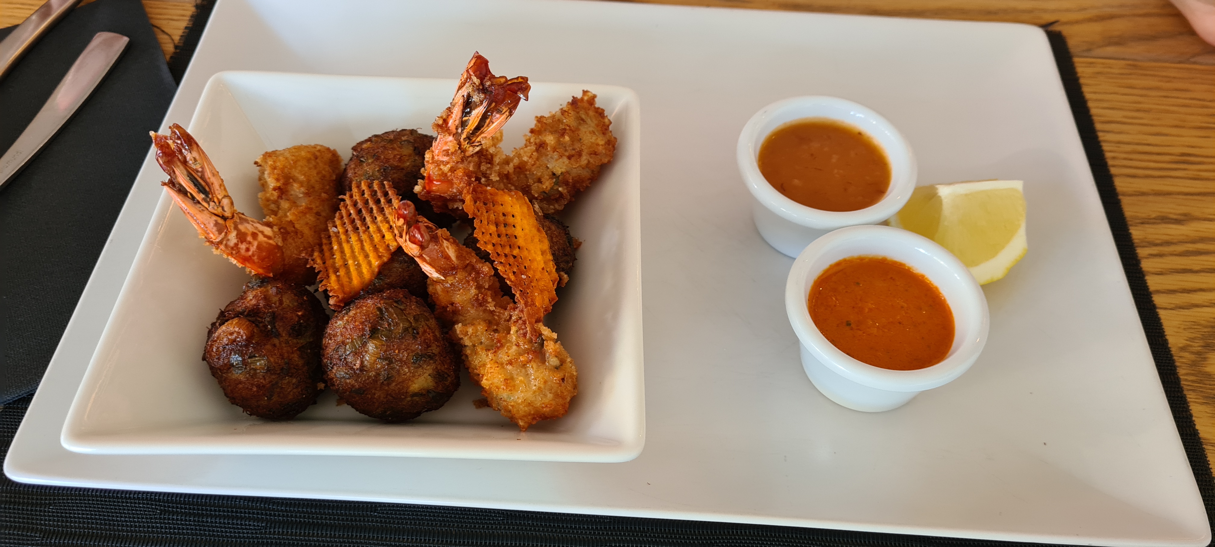 aucune cuisine, de l'assemblage sans goût, des acras à la sauce tomate, des gambas, tempura,?, à la même sauce, du bœuf façon Thaï ( c'est ce qu'il y a écrit) avec de la mayo et des frites, il faut oser ! tout est comme ça, sans effort de cuisine, mais avec une note rapport qualité prix très élevée, dommage, nous étions 7, 7 qui ne reviendront plus dans ce cadre agréable je n'ai pas pris de dessert...