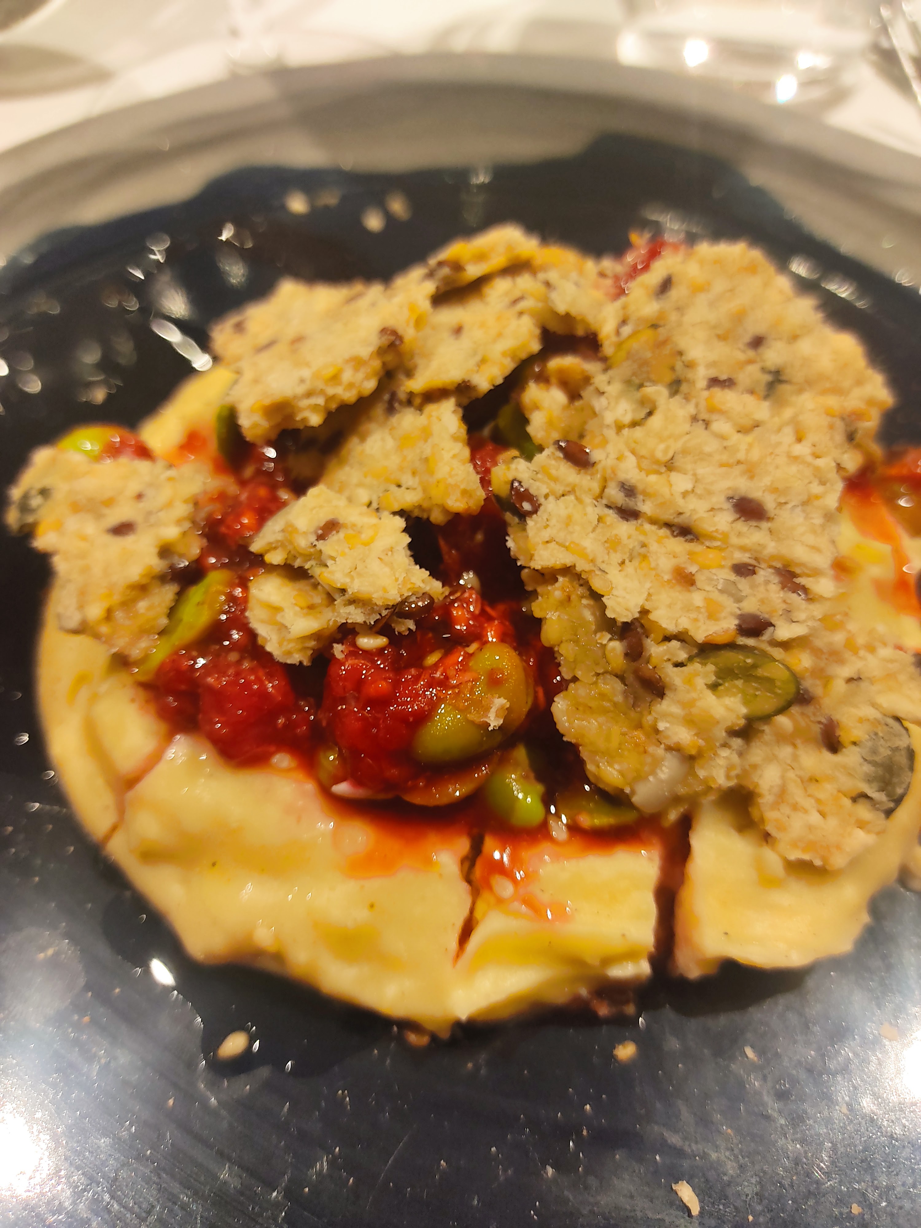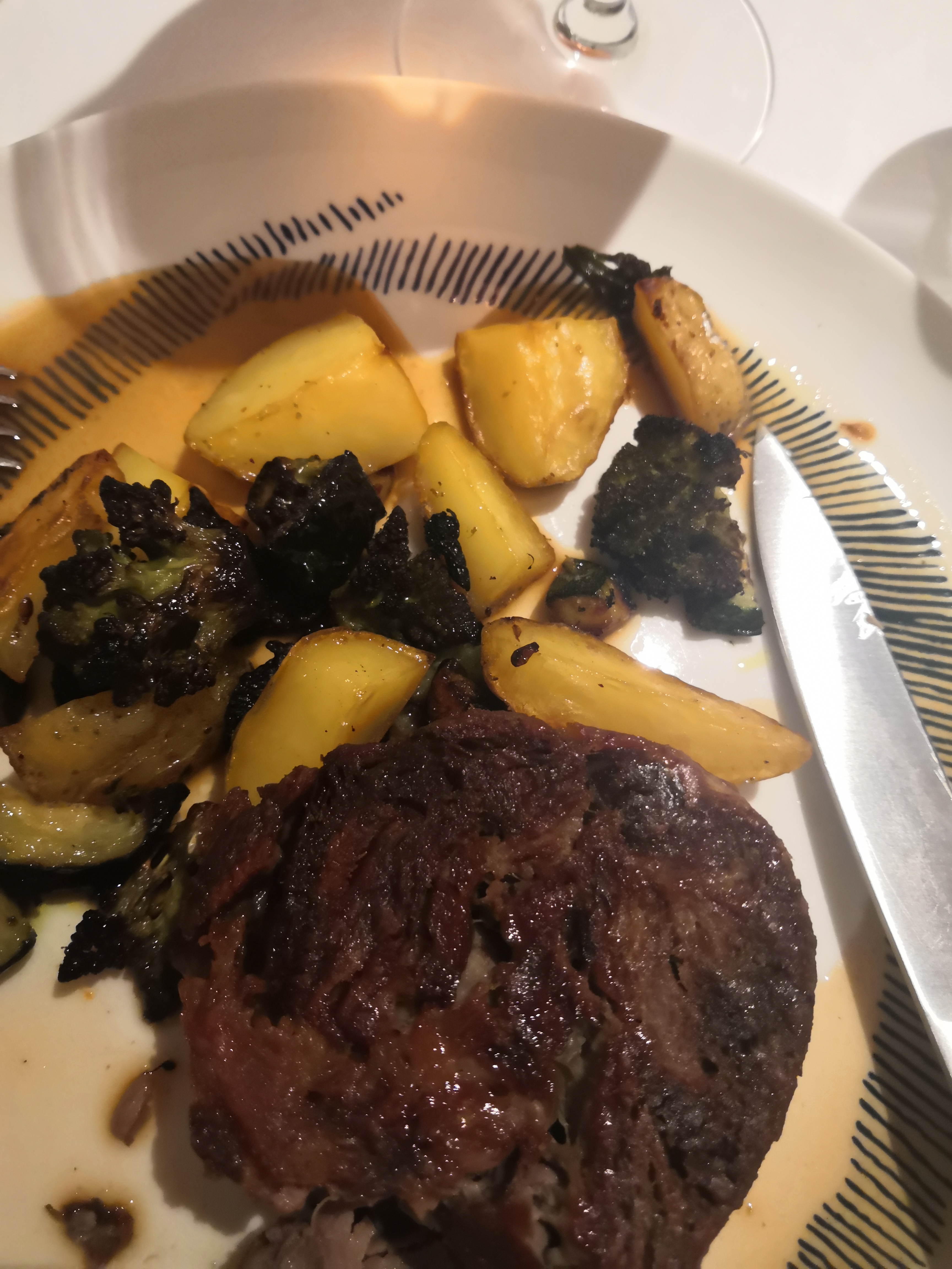Restaurant choisi car il propose aussi des plats végétariens, j'ai trouvé l'aubergine aux pois chiches assez incolore, les lentilles épicées intéressantes mais trop salées, peut-être parce que le plat est froid et que le sel est présent. Par contre l'accueil et le service étaient excellents.