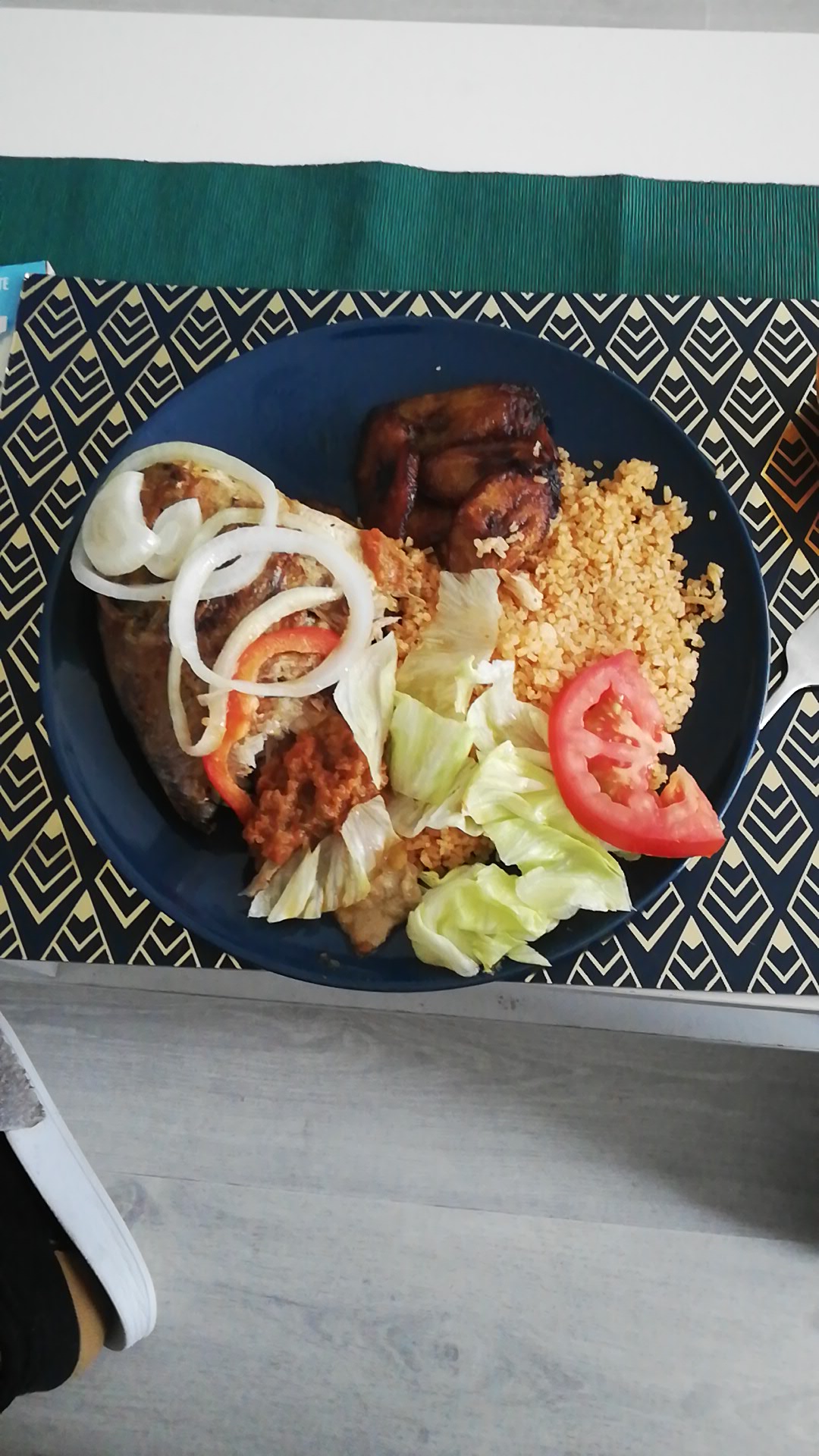 Très bon plat (Thieb poulet + Aloko) Quantité Généreuse ! Ça fait du bien de manger du fait maison à côté de son travail ! Je recommande !