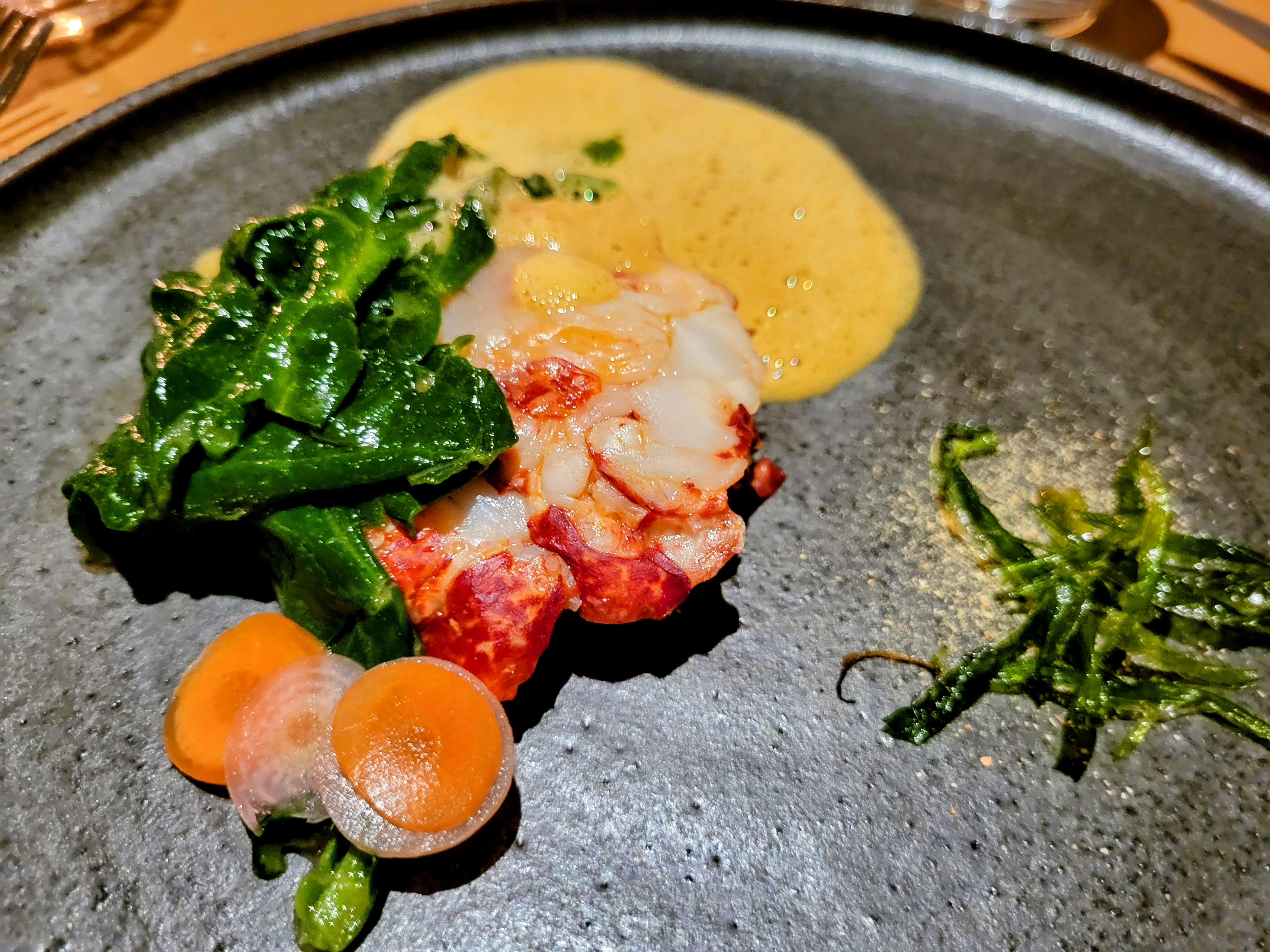 Une mise en avant de création végétales sans délasser les protéines. Une superbe découverte, avec des produits très locaux et de saisons. Une réconciliation avec les légumes 😉