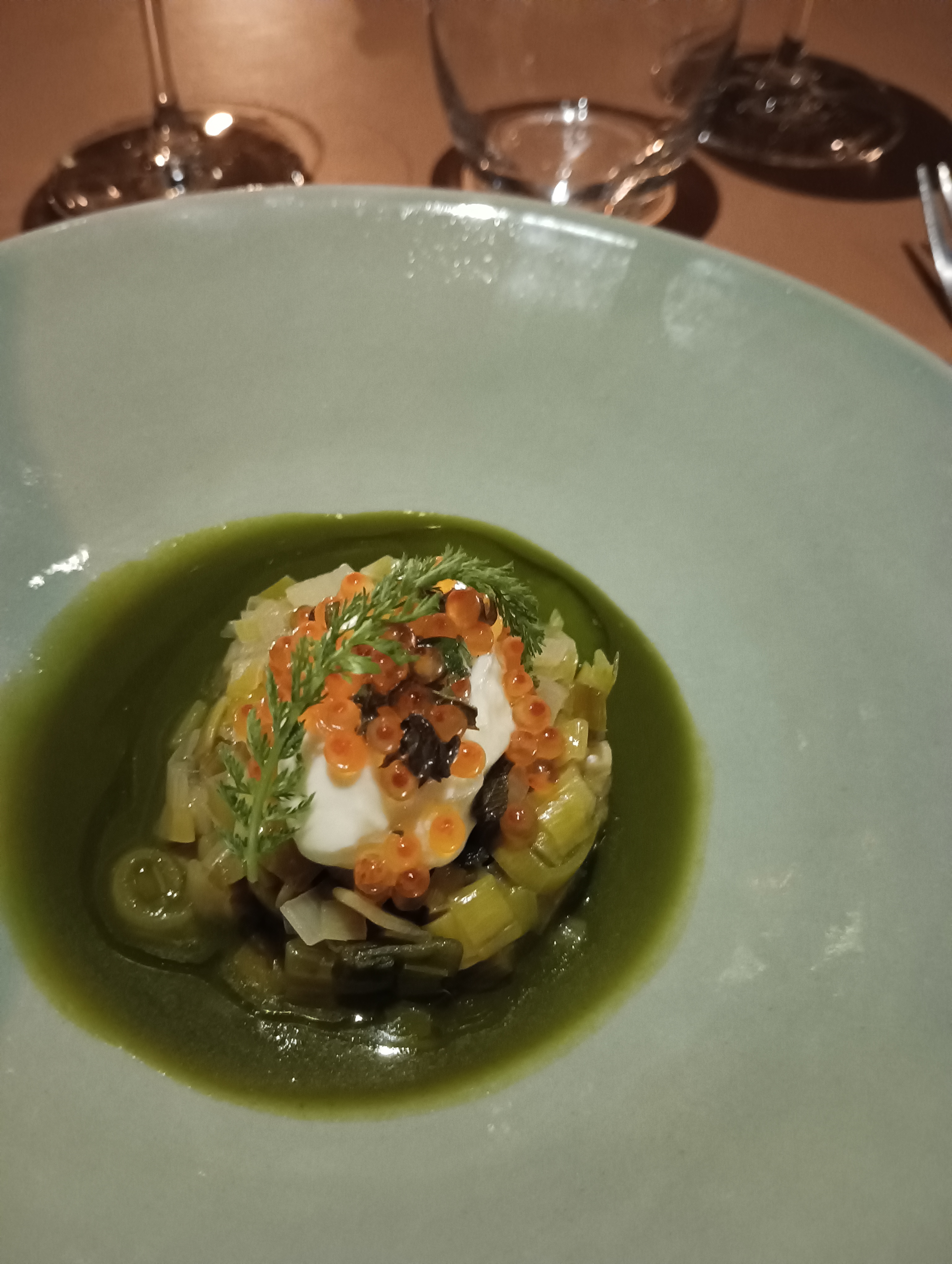 Une cuisine innovante et créative autour de ce menu « hommage au printemps »Tout est bon, surprenant et remplie de fraîcheur. Le plaisir des yeux et des papilles. Le lieu est d’une grande sobriété aménagé avec goût, l’ambiance y est cosy et calme. On ressent de la chaleur humaine, de la bonne humeur et une envie de satisfaire. Bravo à vous vous et merci