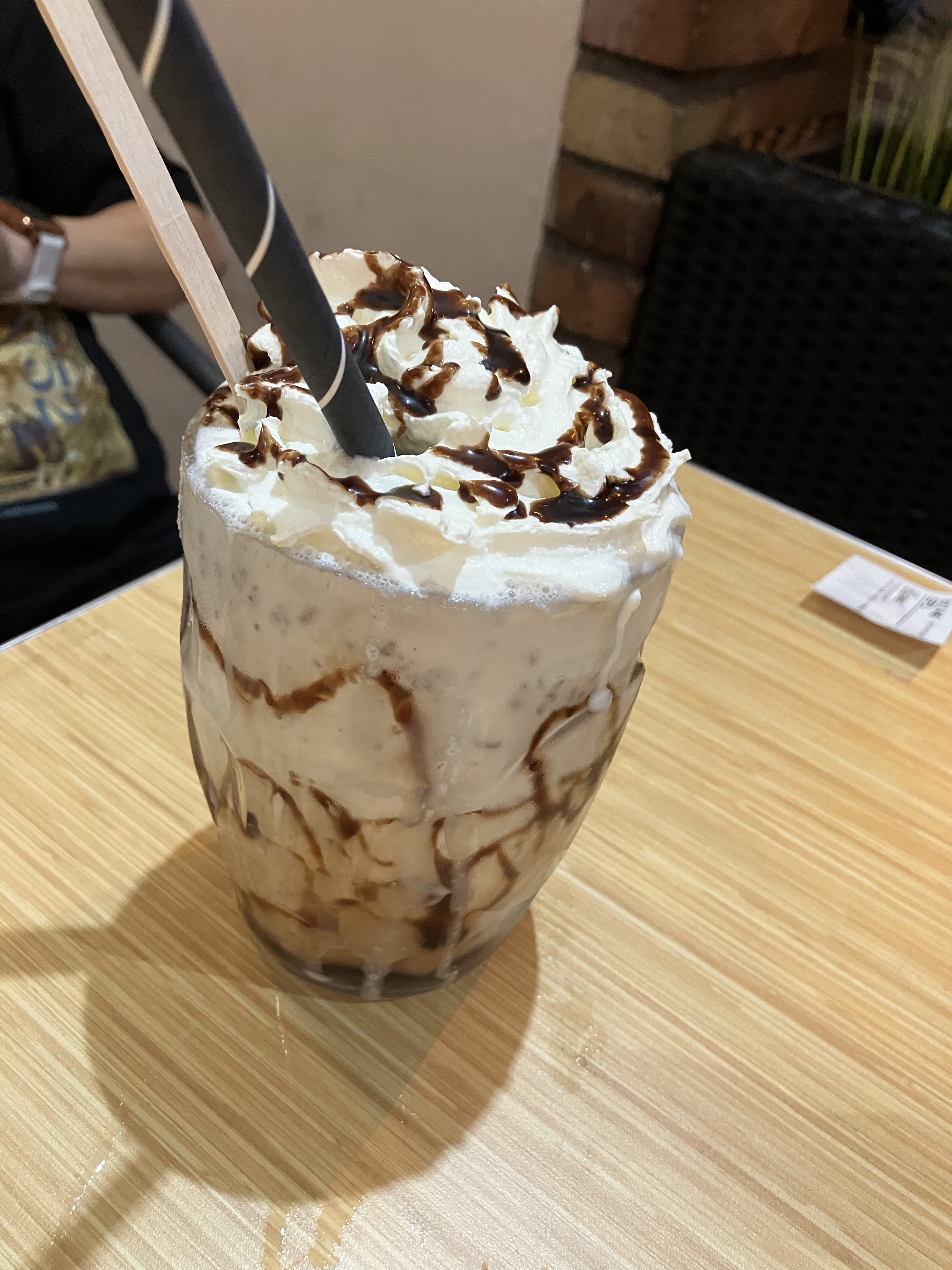 Le service est très lent , on a du attendre environ 25min pour 3 glaces. Les glaces étais liquide , le coulis était horrible , et le nappage m&m’s étais quasi invisible 😅.