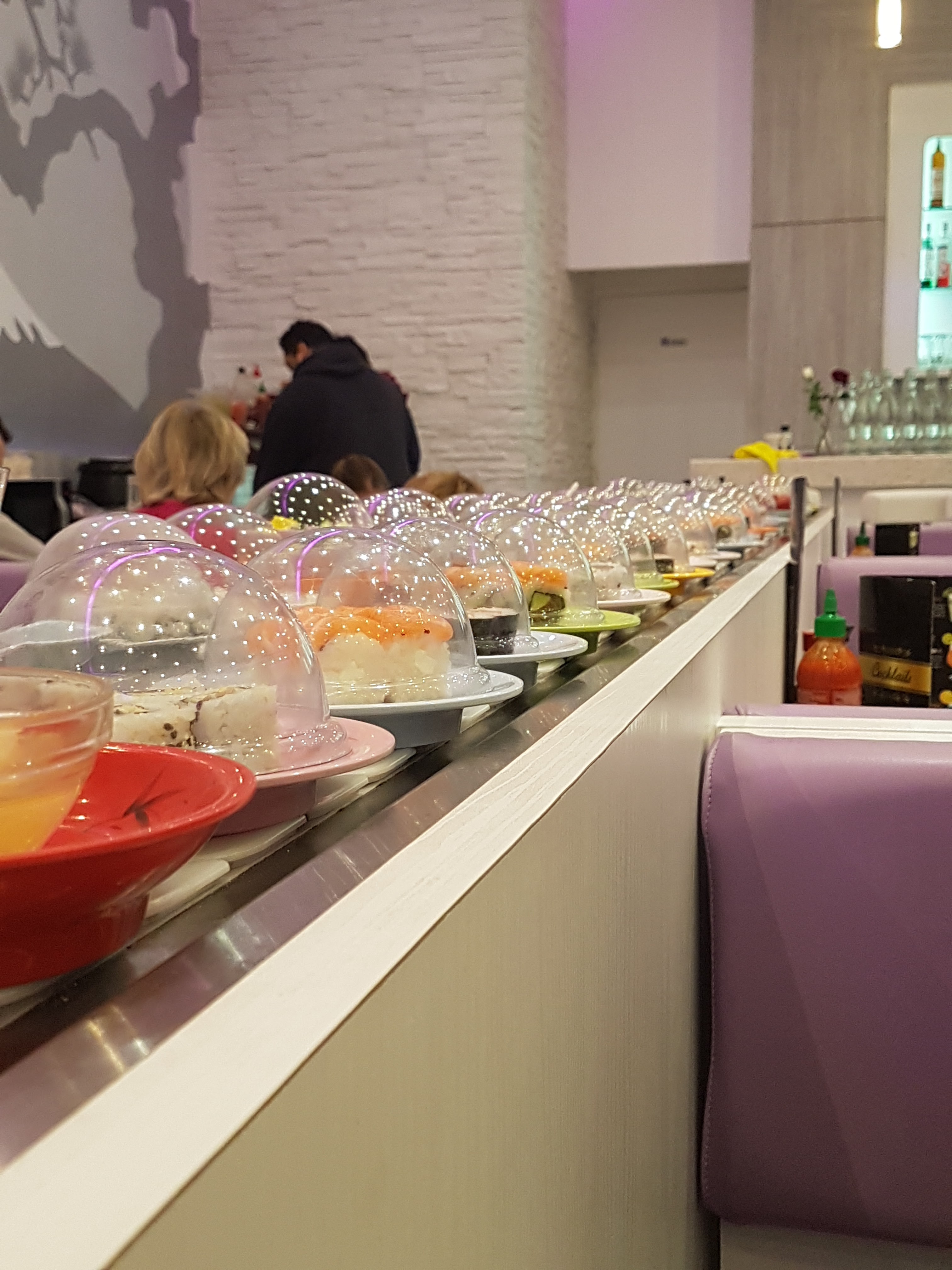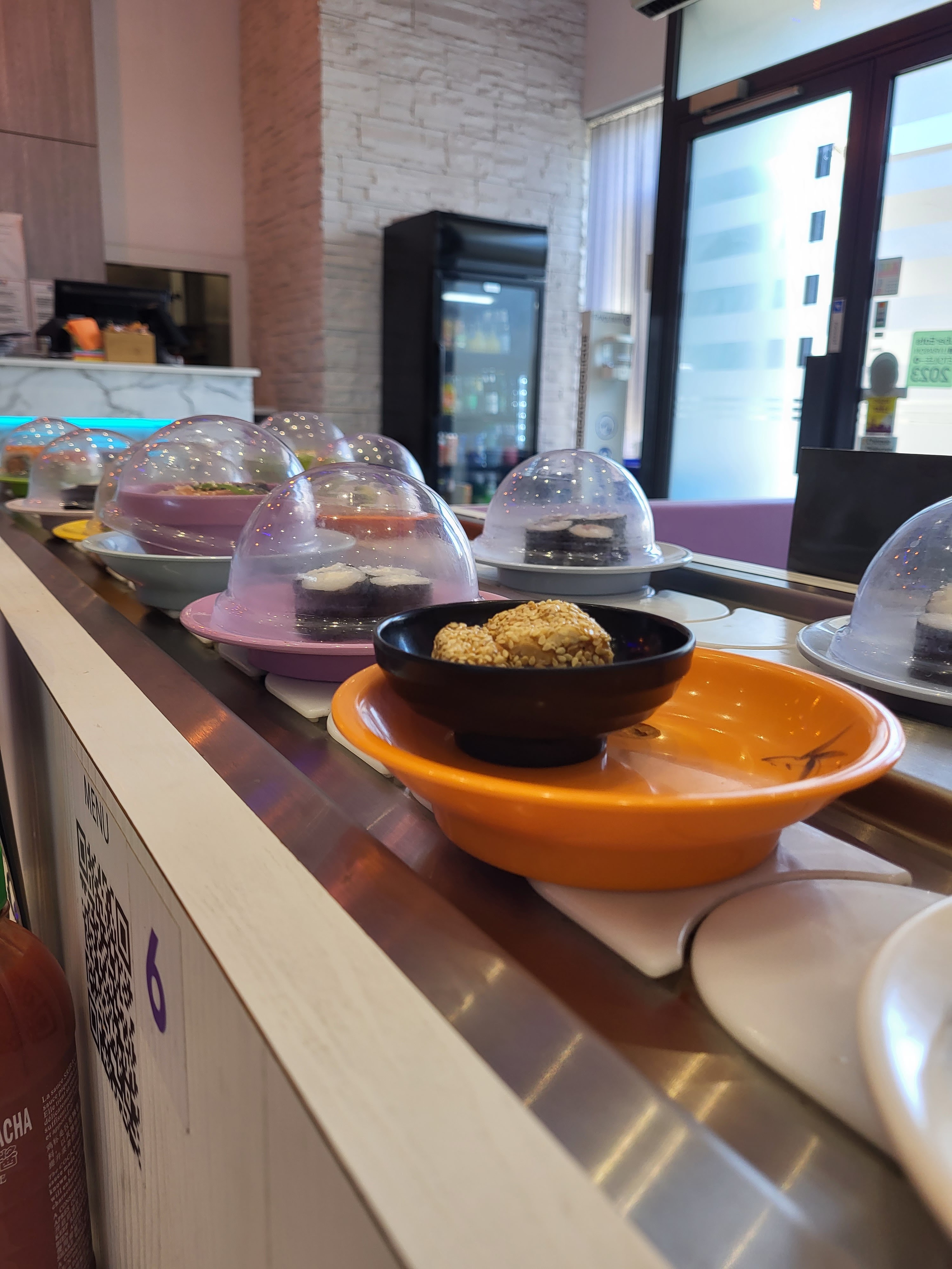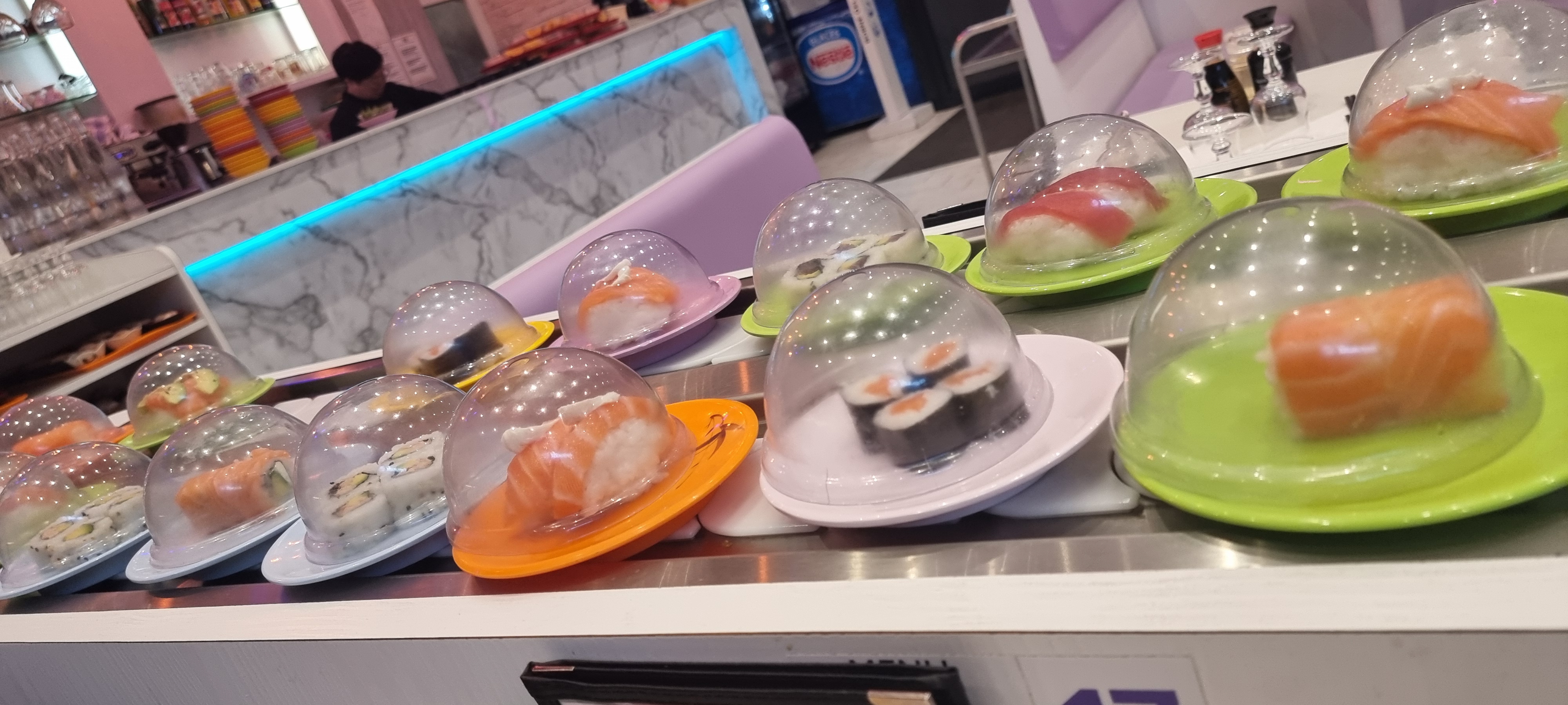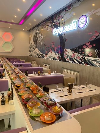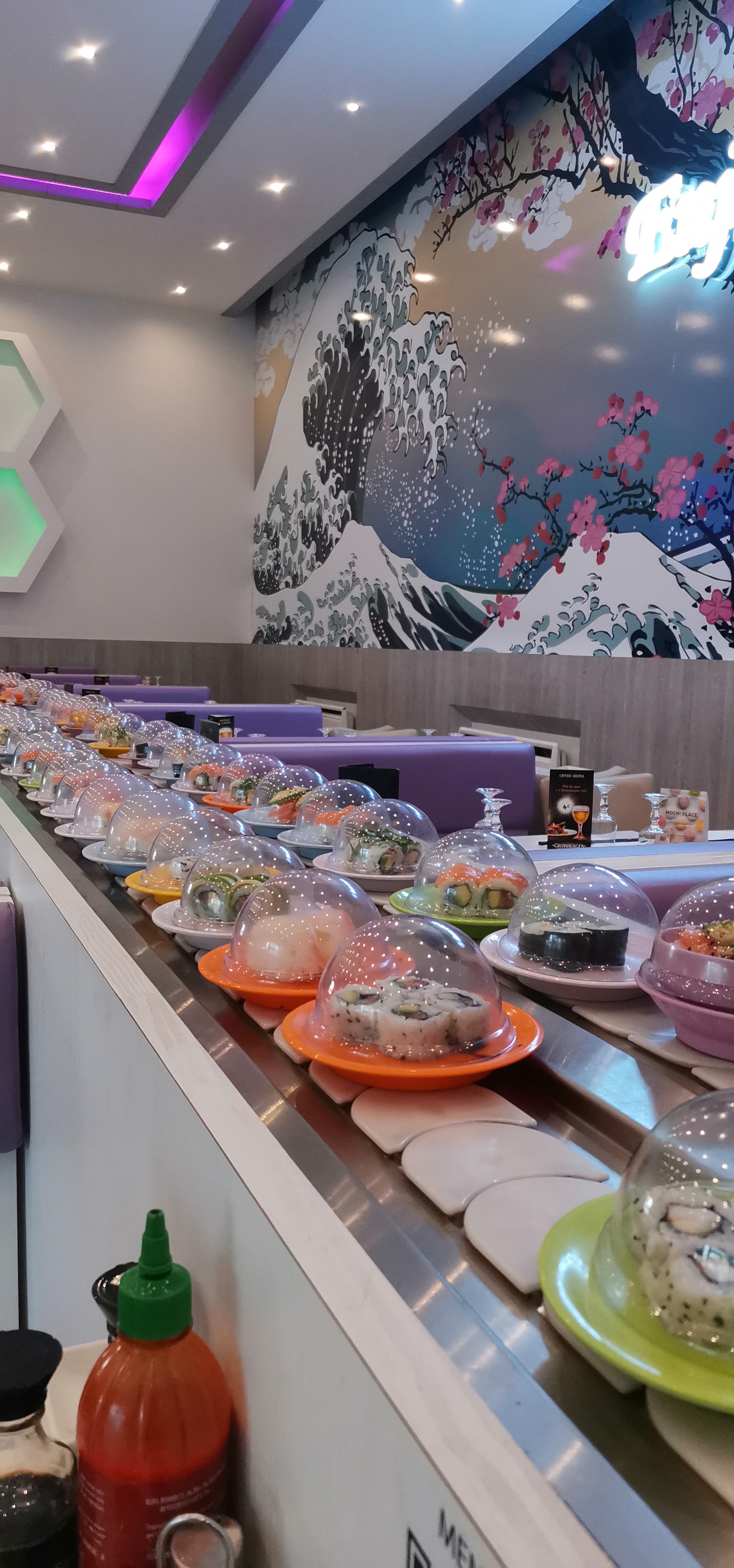 Faut aimer le système du carrousel, personnellement je préfère les buffet à volonté à la commande, pas de risque de tomber sur une assiette froide ou tiède d'un plat qui aurait tourné plusieurs minutes tout le long du restaurant