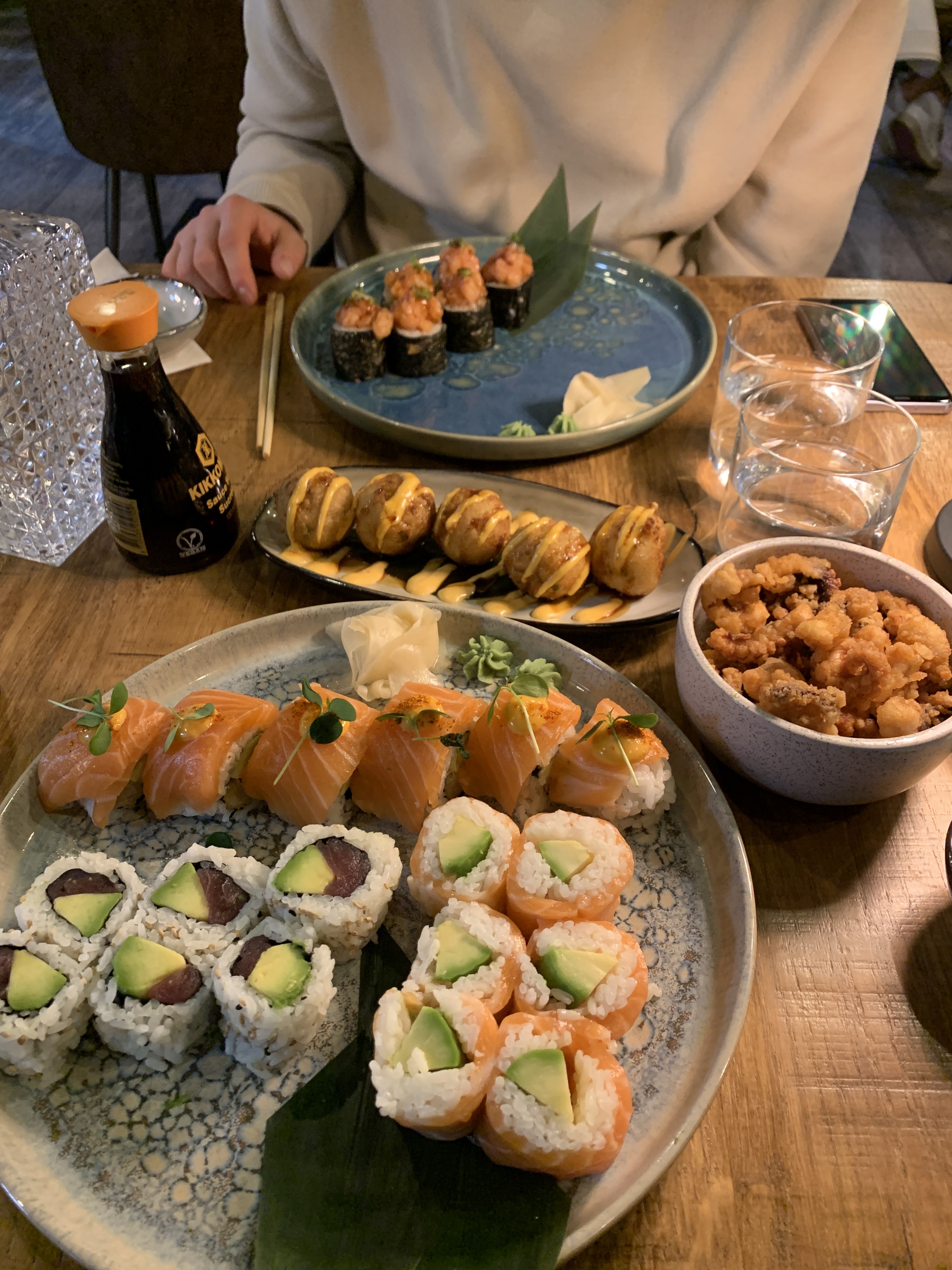 Sushis ( création et cali ) + gyozas crevettes incroyables. Un accueil souriant et sympa… un carton assuré à la duranne
