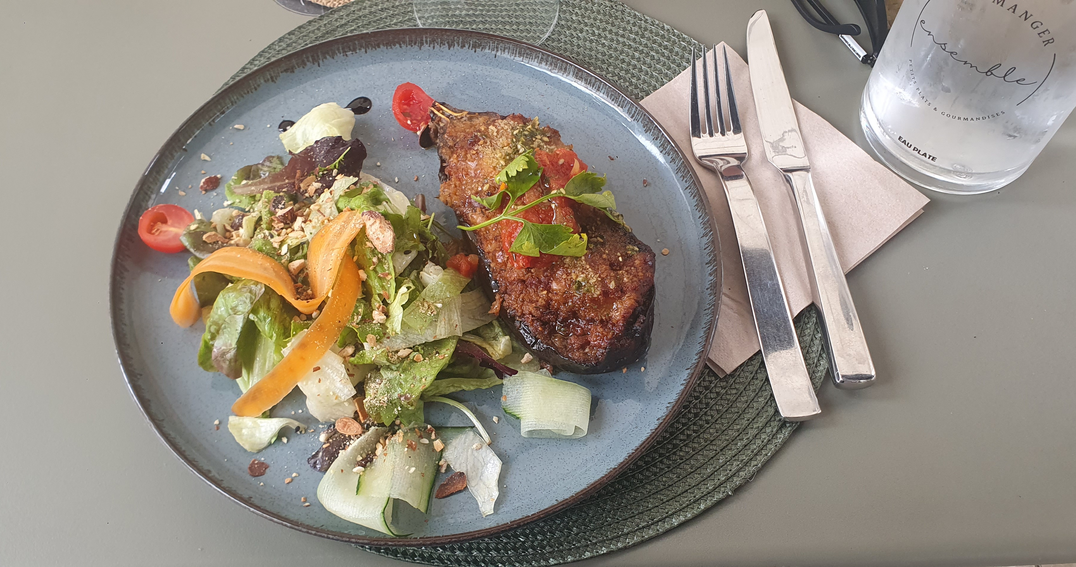 Joli restaurant avec une belle terrasse en plein centre-ville de Vaison la Romaine. Ensemble propose une cuisine fusion à base de produits frais et locaux. J’ai beaucoup apprécié l’approche ecoresponsable. A noter une belle sélection de boissons. Le personnel est agréable et sympathique. Je vous recommande vivement sur place ou à emporter #restaurant #vaisonlaromaine