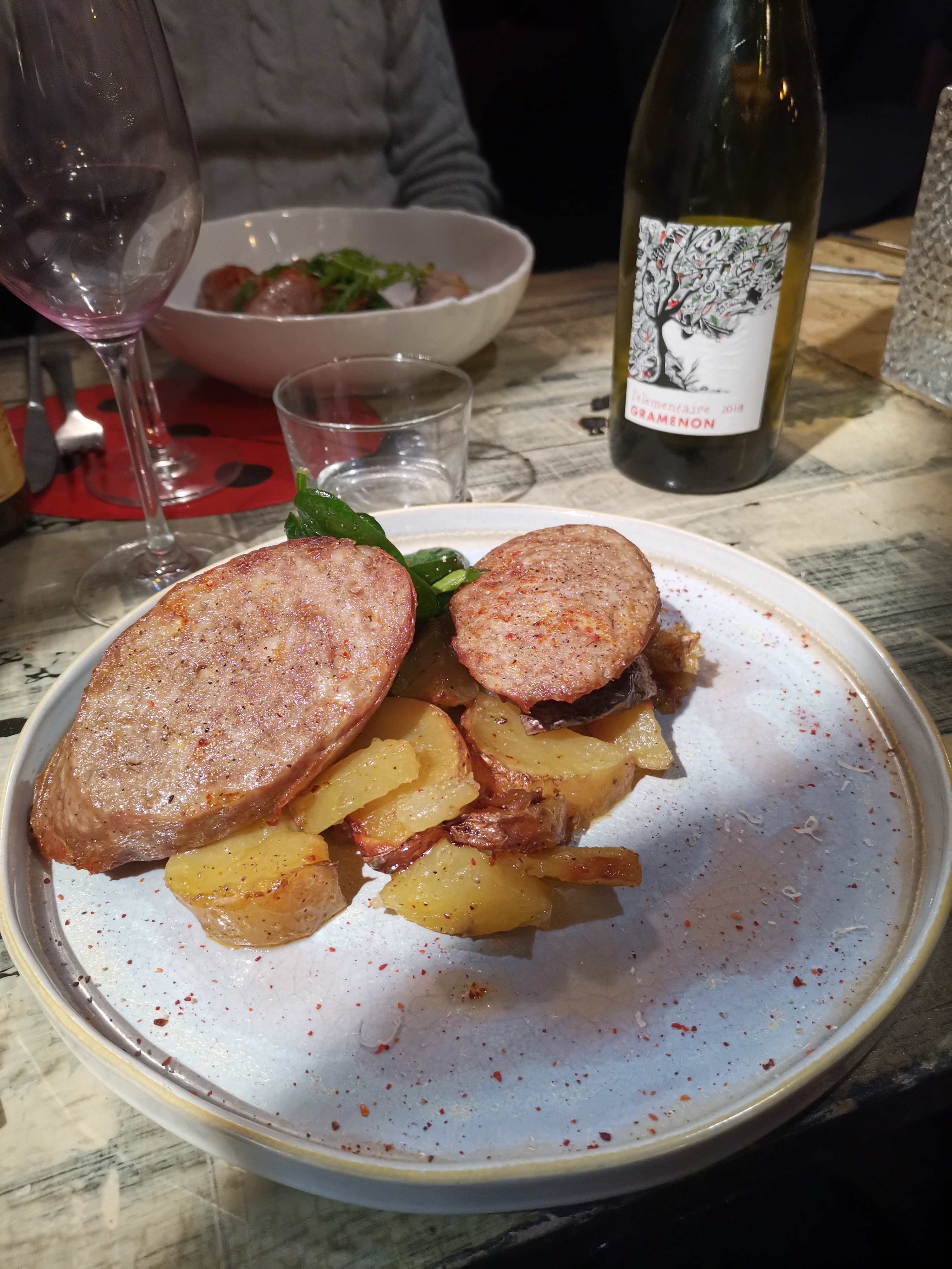 Très bon restaurant avec excellent choix de vin. J'ai adoré la présentation des suggestions de vin. Plats copieux (la saucisse cou d'oie est énorme ! Mais parfaite en hivers ;-).)