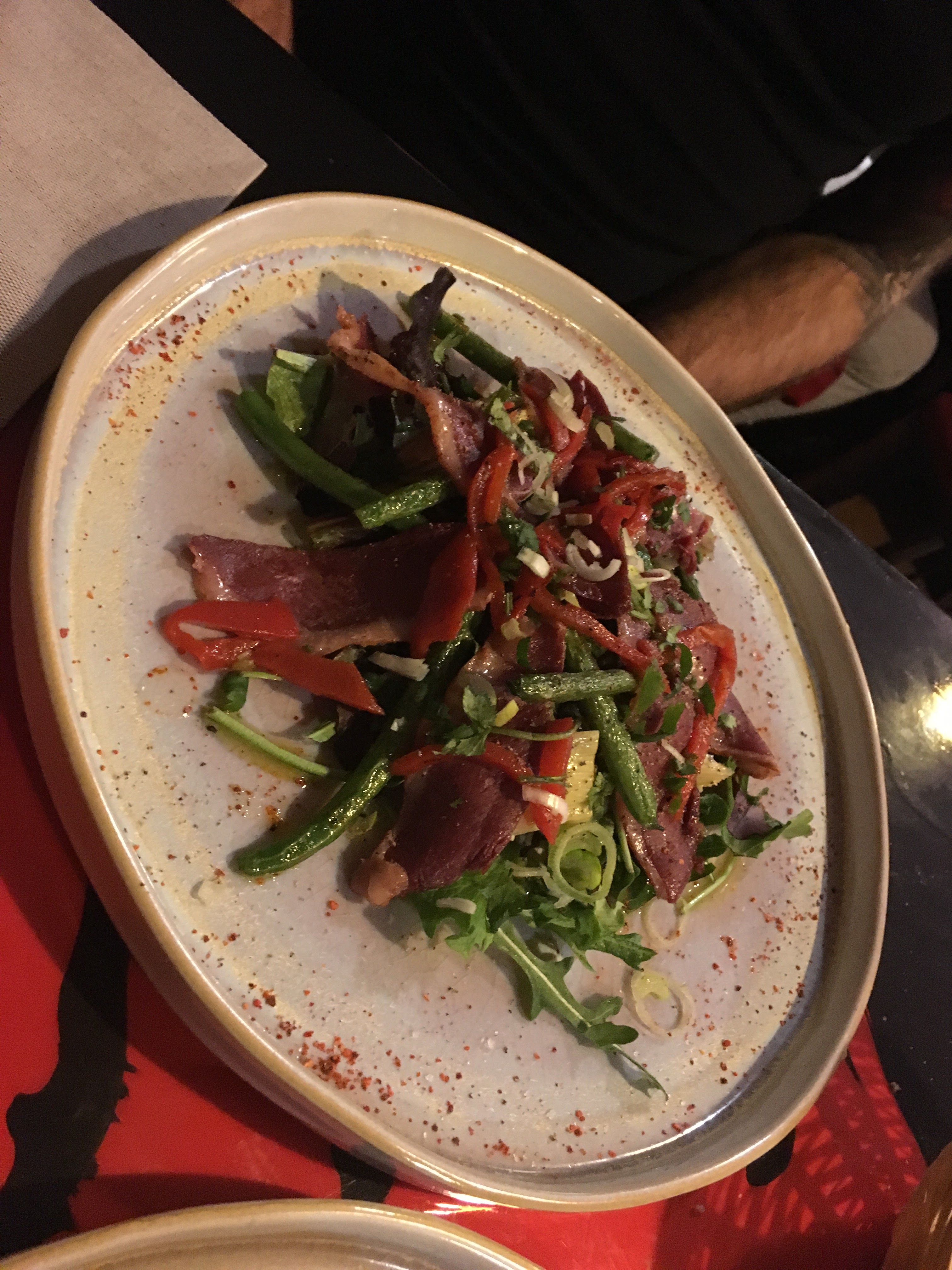 Nourriture, service et vin superbes, une expérience globale fantastique avec d'excellentes interactions avec le personnel. Sans menu de boissons, les serveurs discutent avec vous de ce que vous aimeriez boire et font des recommandations en fonction de cela. C'était une façon amusante et originale de commander une bouteille de vin (qui était délicieuse). Nos plats de canard confit et de saucisses étaient délicieux et pleins de saveurs. Dans l’ensemble, c’est une expérience culinaire fantastique, avec la touche agréable d’avoir plus d’interaction avec le personnel, je recommande vivement de dîner ici.