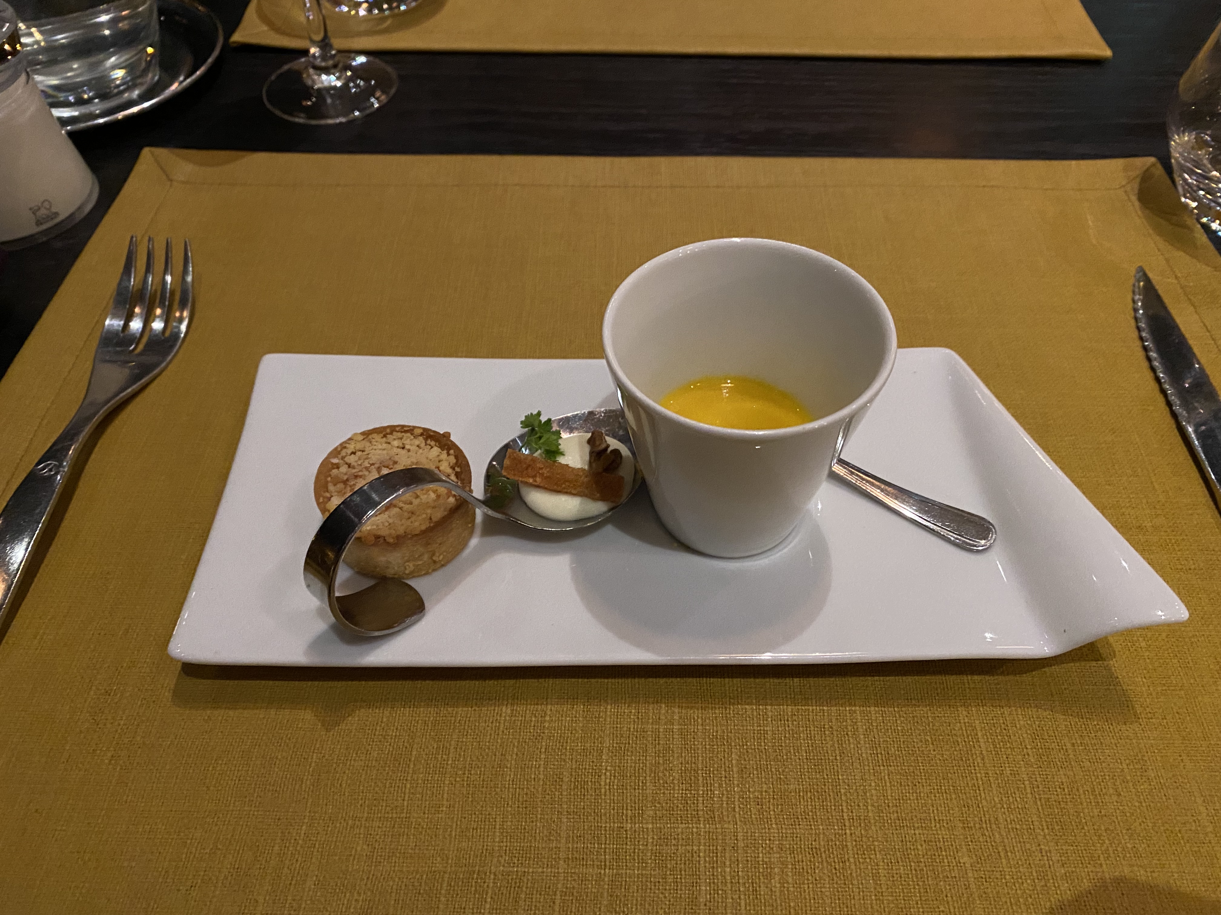 Repas très bien du début jusqu’à la fin. Très bon accueil, le nouveau serveur a déjà les bons réflexes d’un restaurant gastronomique. Le cadre est cosy, on s’y sent bien.