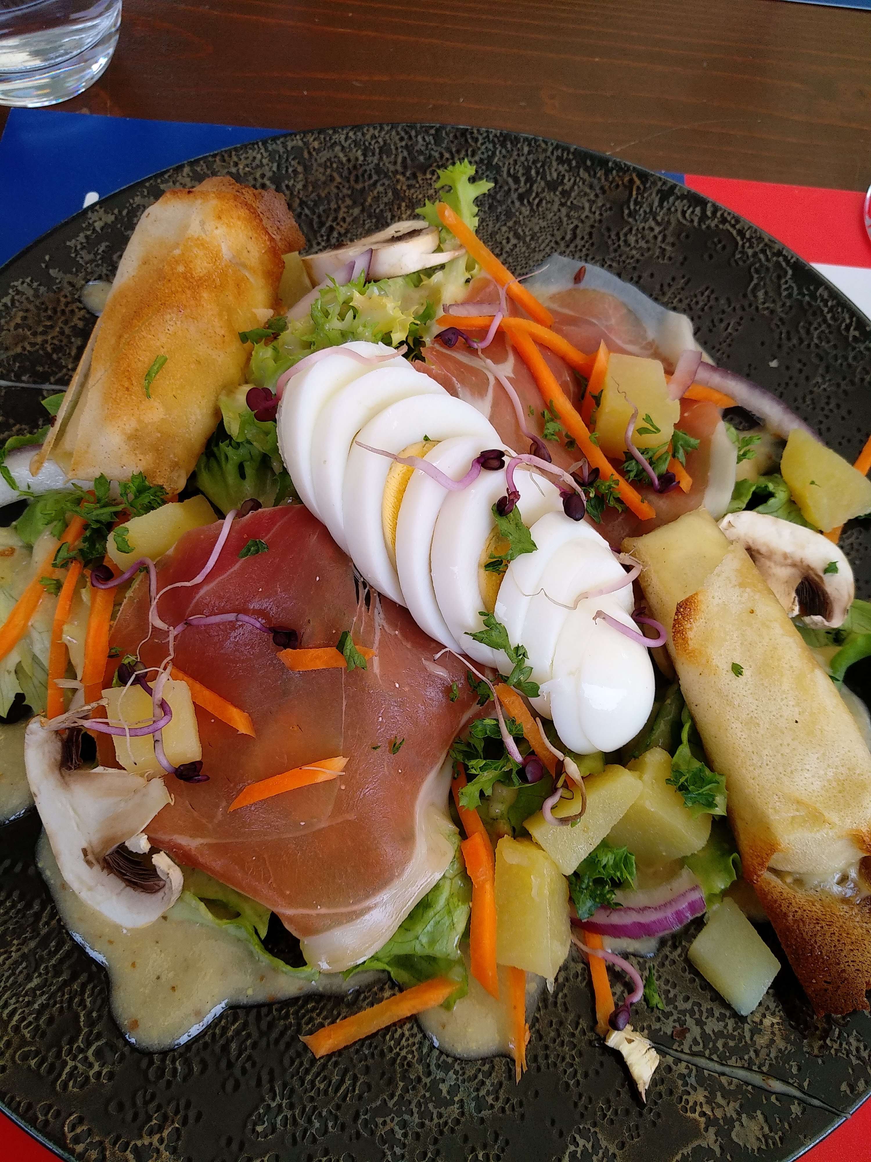 Malgré l'attaque des guêpes ( en même temps c'est l'été), on a très bien mangé, entrée + plat + dessert au top 👌