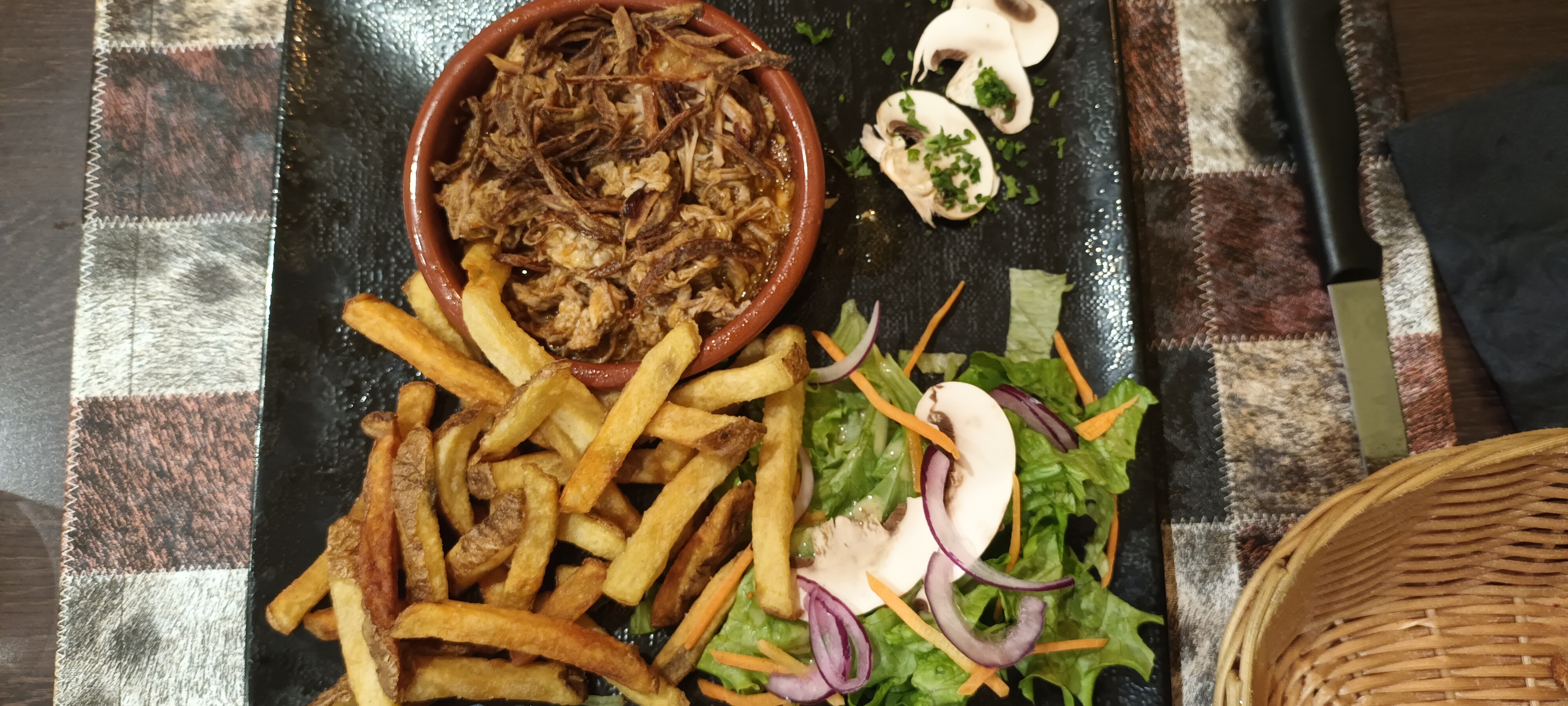 Accueil chaleureux par l'équipe qui est aux petits soins tout au long du repas. Nous avons été très bien conseillés pour le choix de nos plats. Les produits sont de qualité et proviennent d'un circuit court. Salade très copieuse et ribs succulents. Je vous conseille vivement ce restaurant