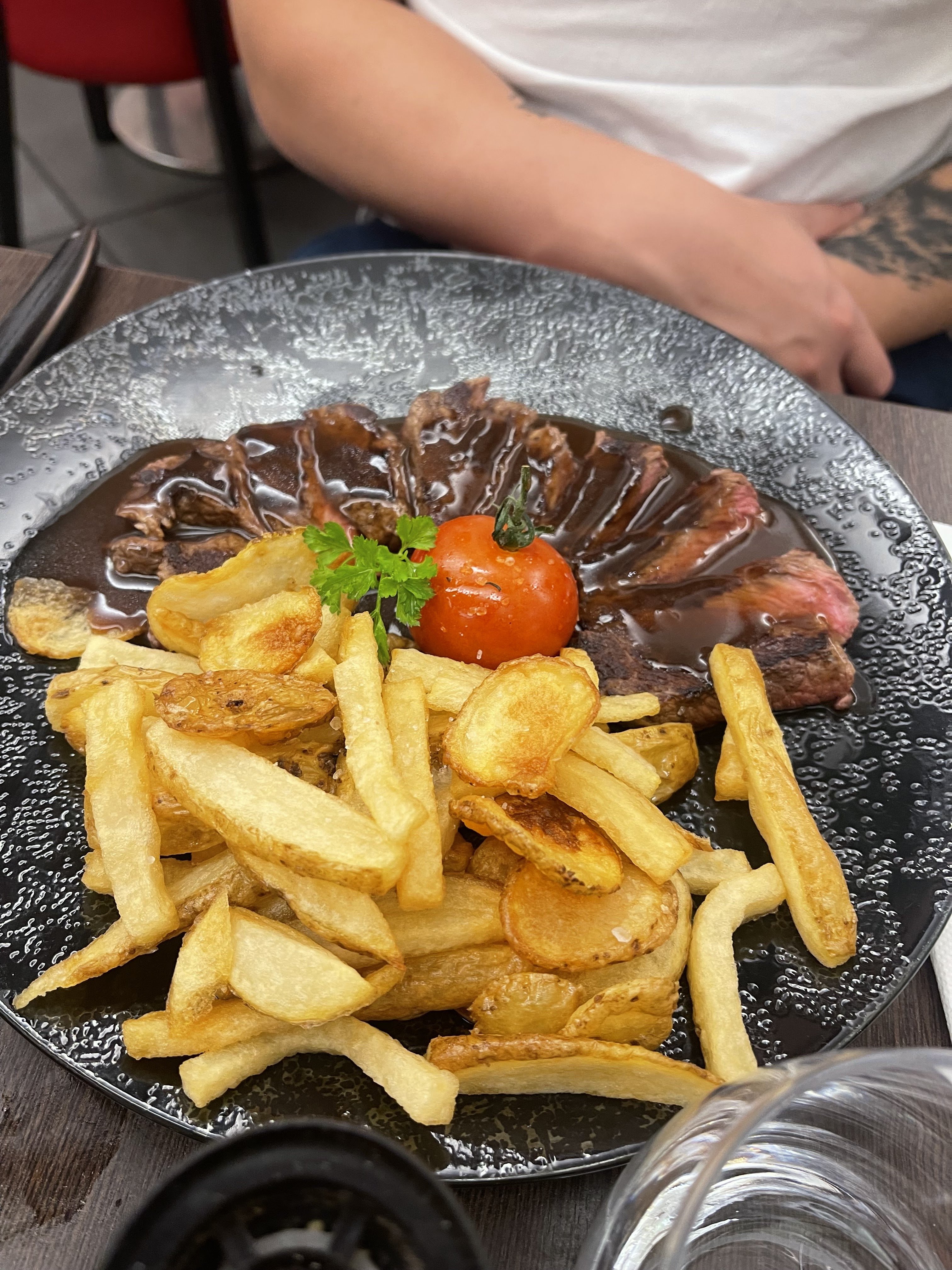 Cuisine moyenne, rien de bien inventif et rien qui ne nécessite un détour. Ça se laisse manger mais on l’a vite oublié tant ce qui est dans l’assiette est banal et cher pour ce que c’est. Service peu souriant sauf au moment de payer…